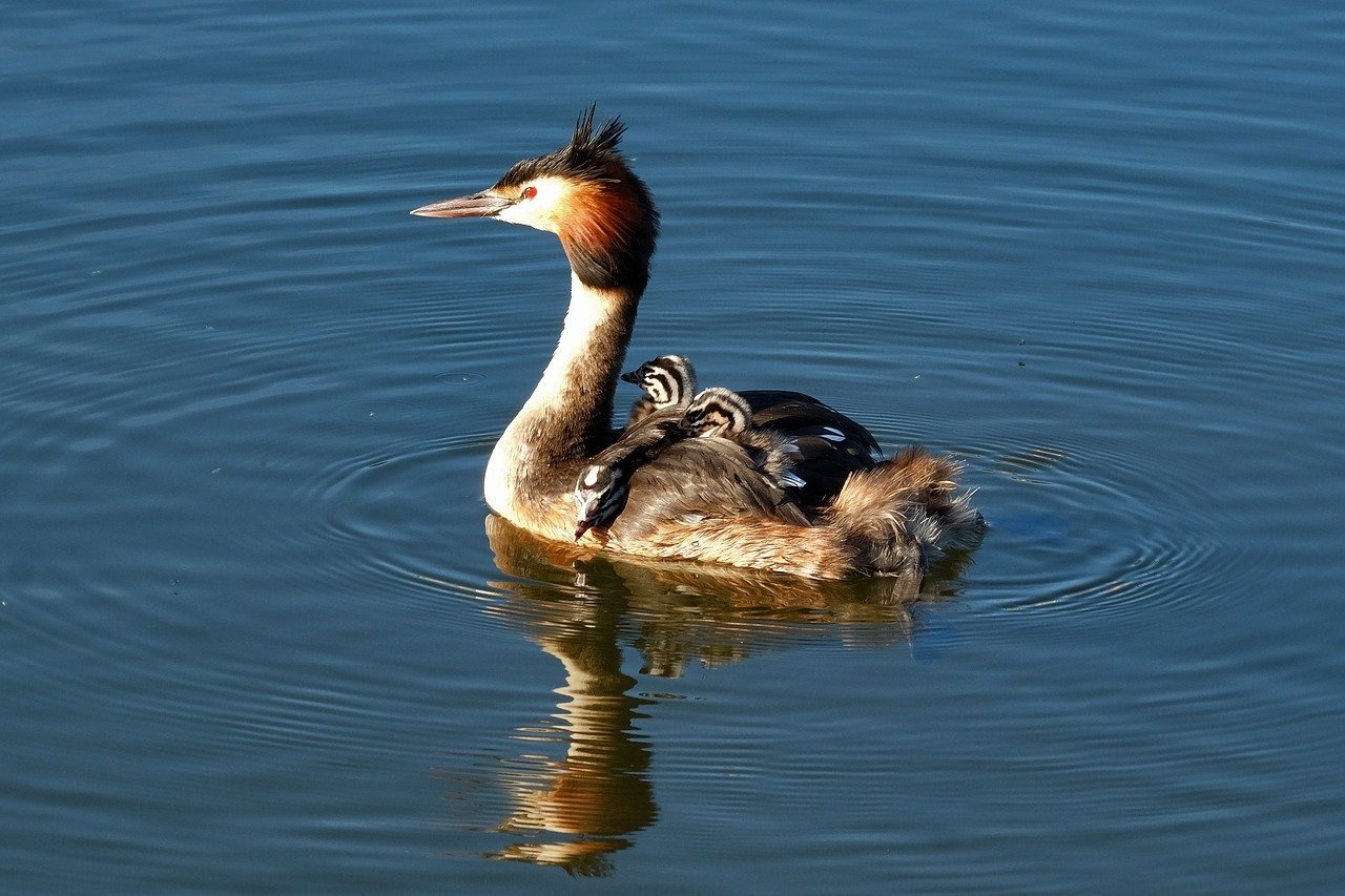 Водоплавающие чомга поганка