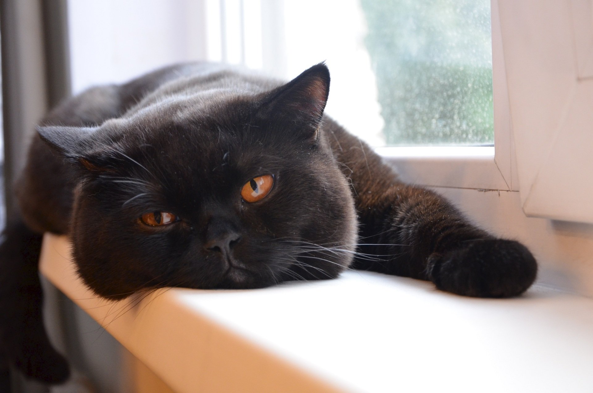 Шотландский кот прямоухий черный кот