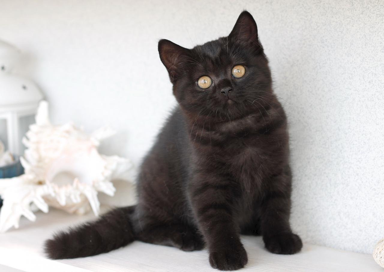 Кот британец черный прямоухий