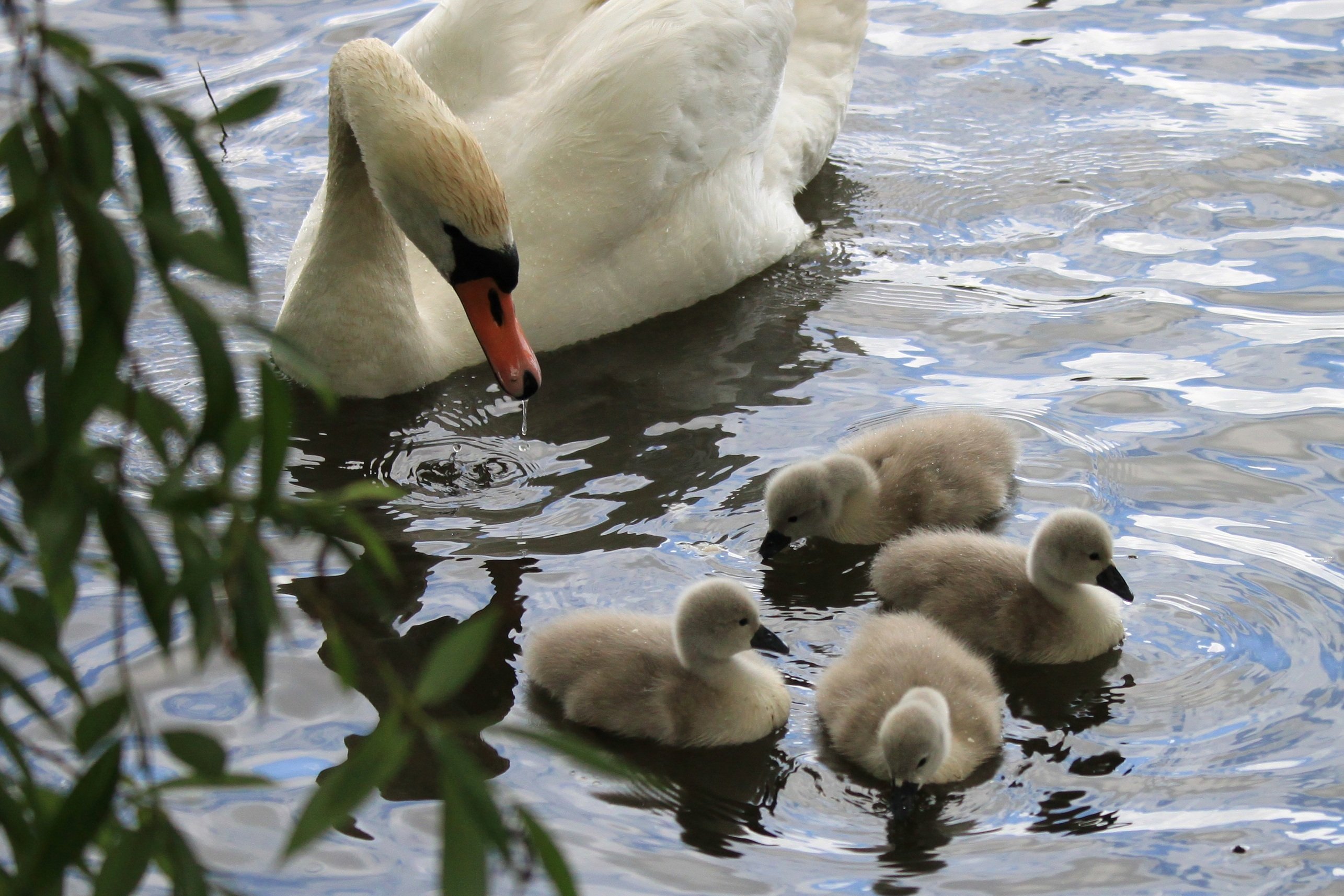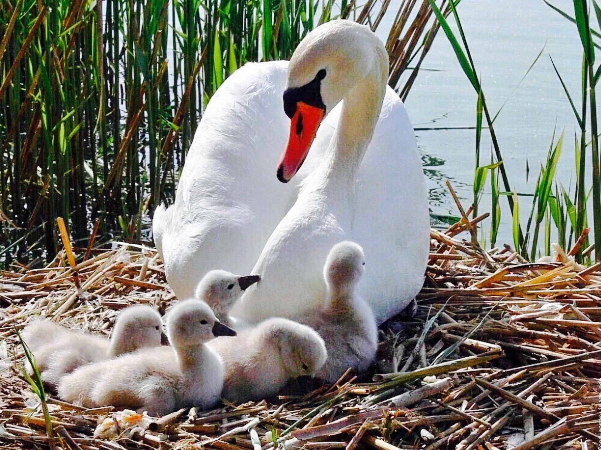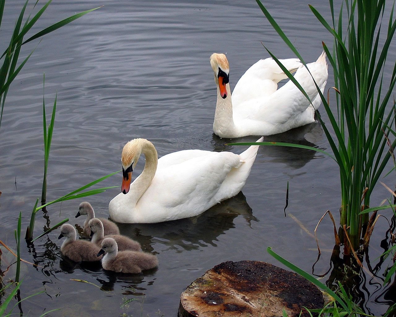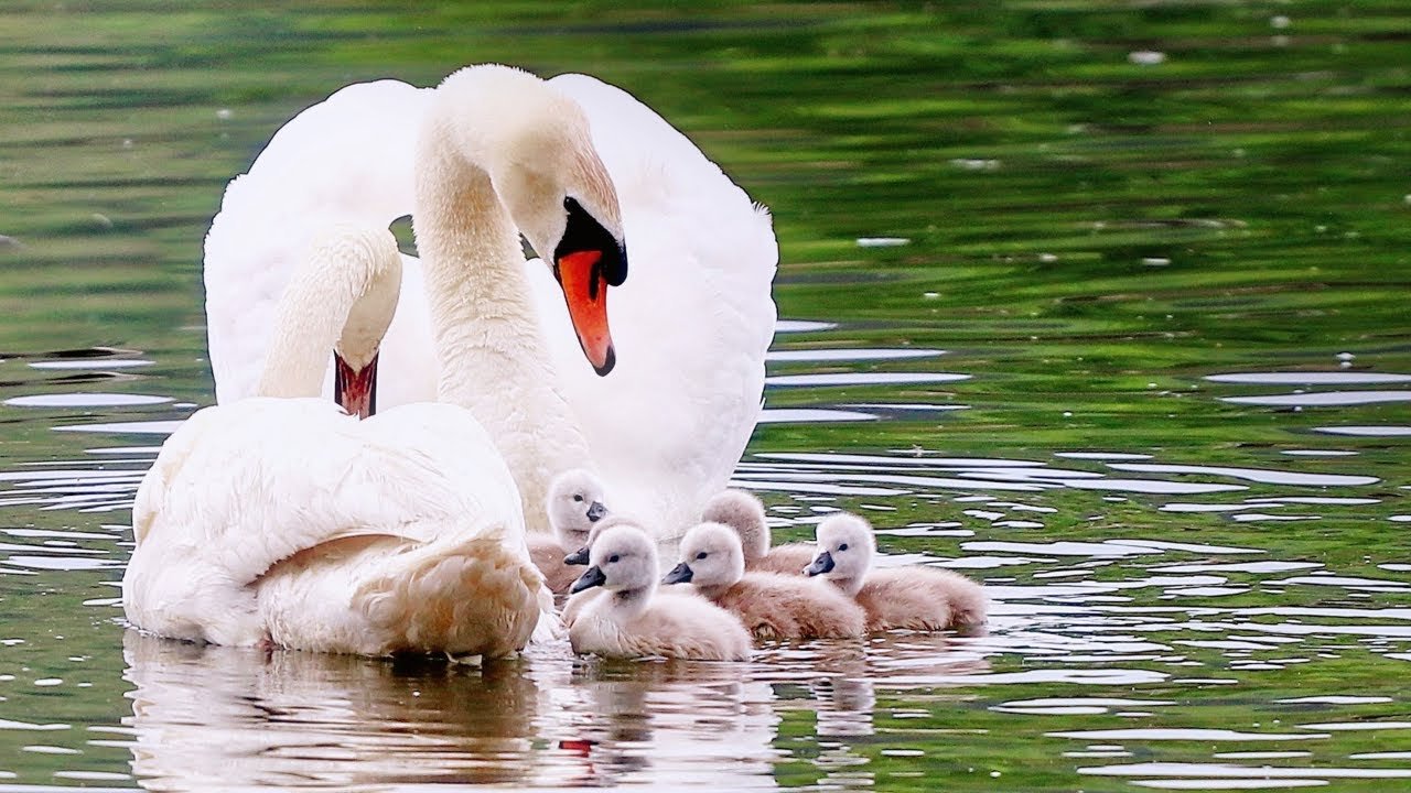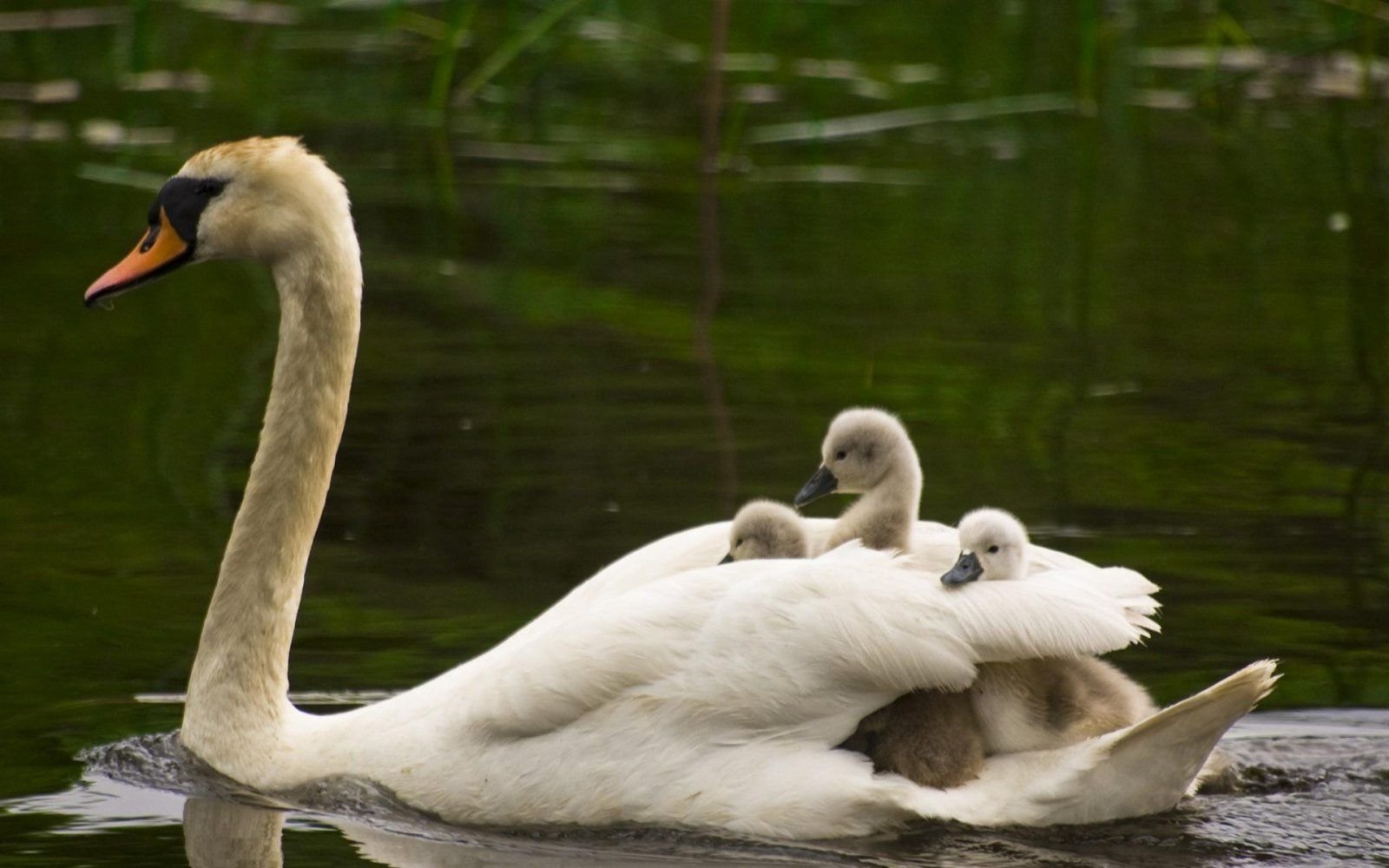 Лебедь с малышами