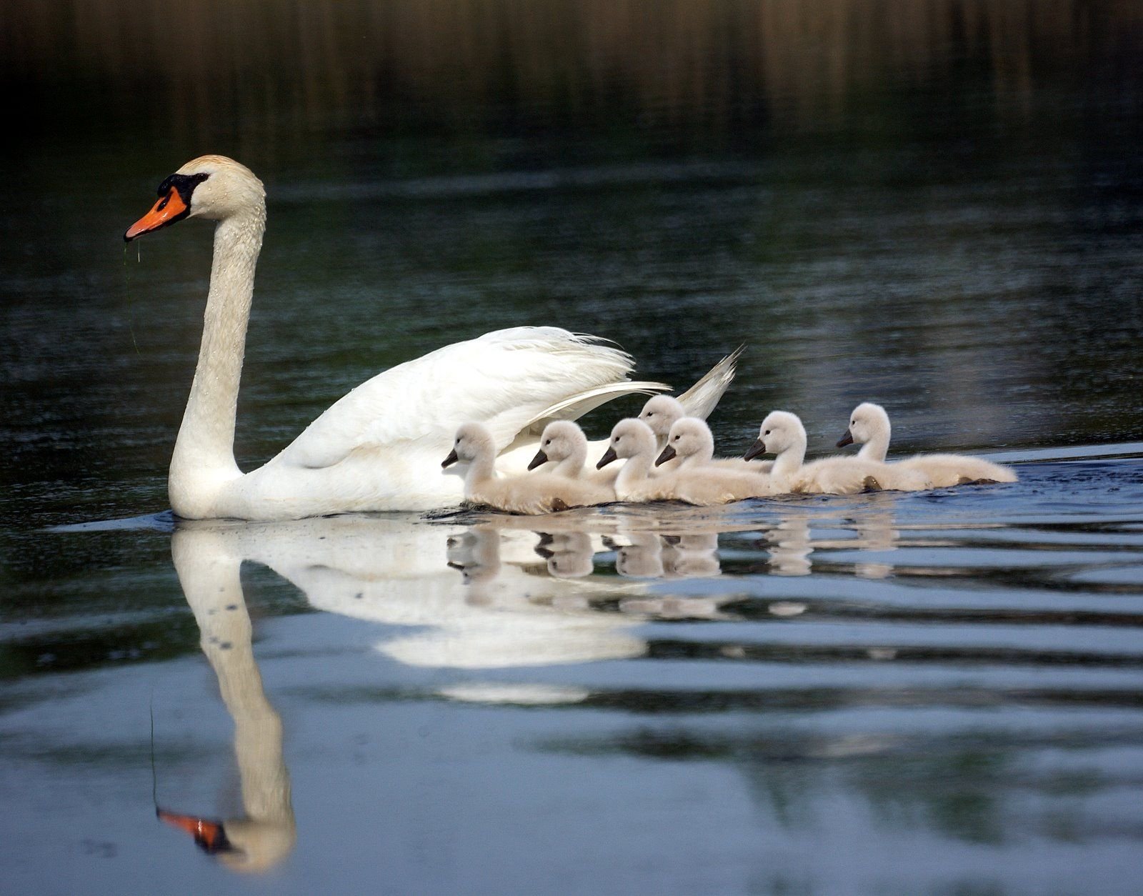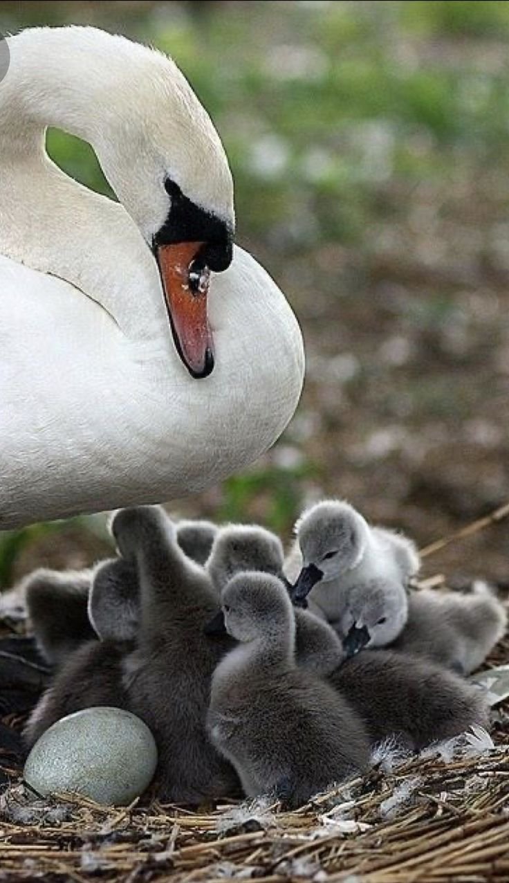 Лебедь с птенцами