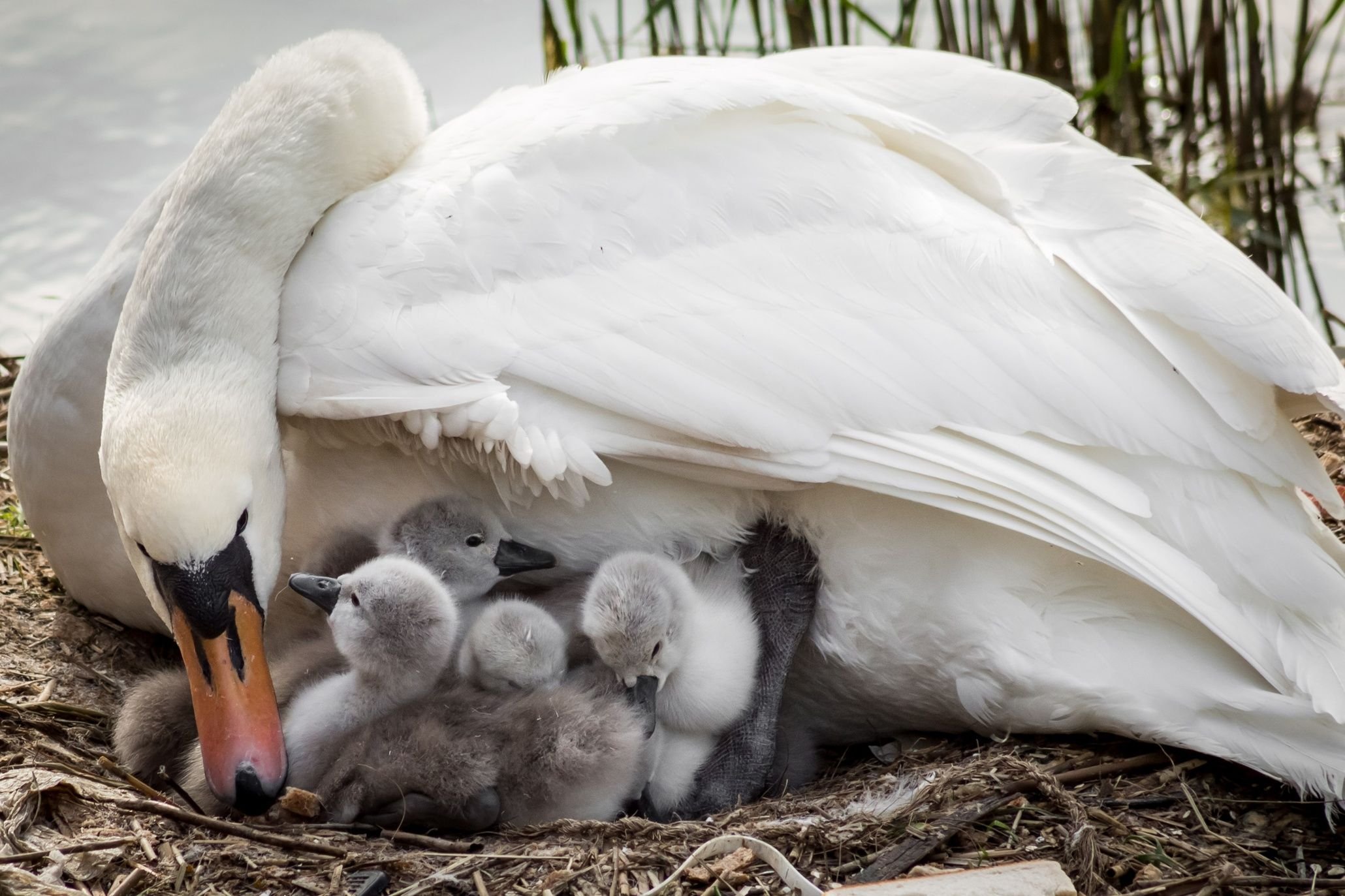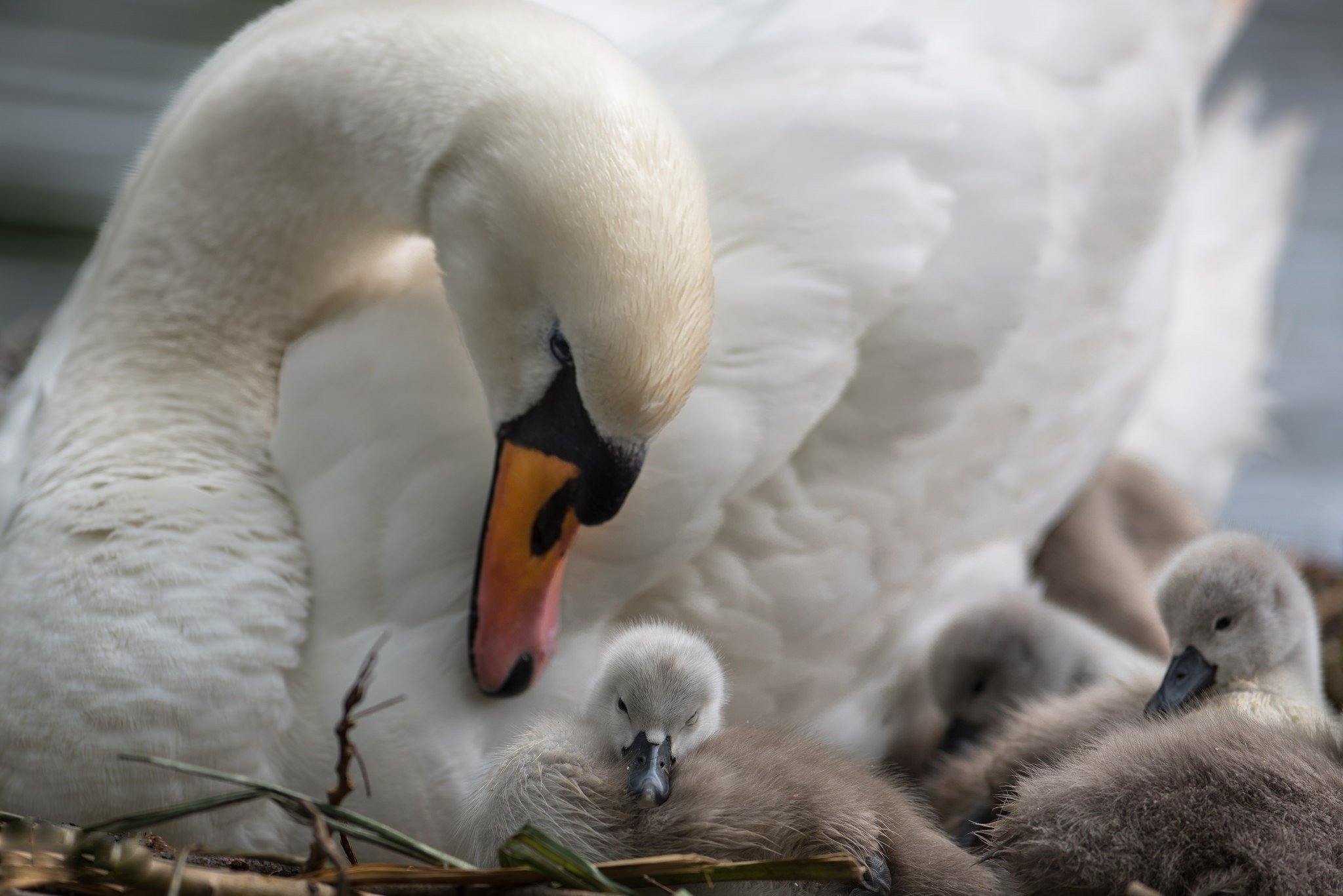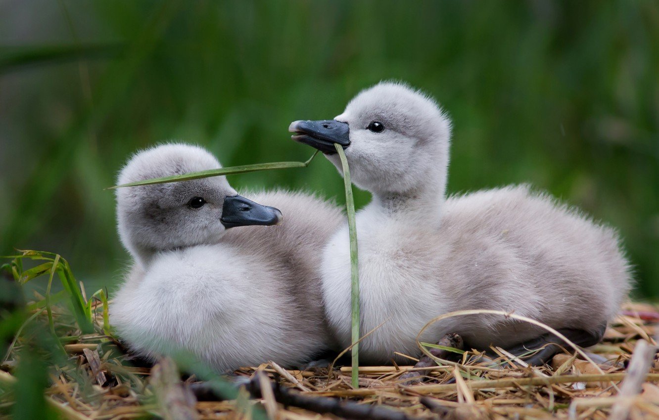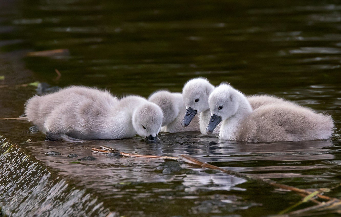 Новорожденные лебедята
