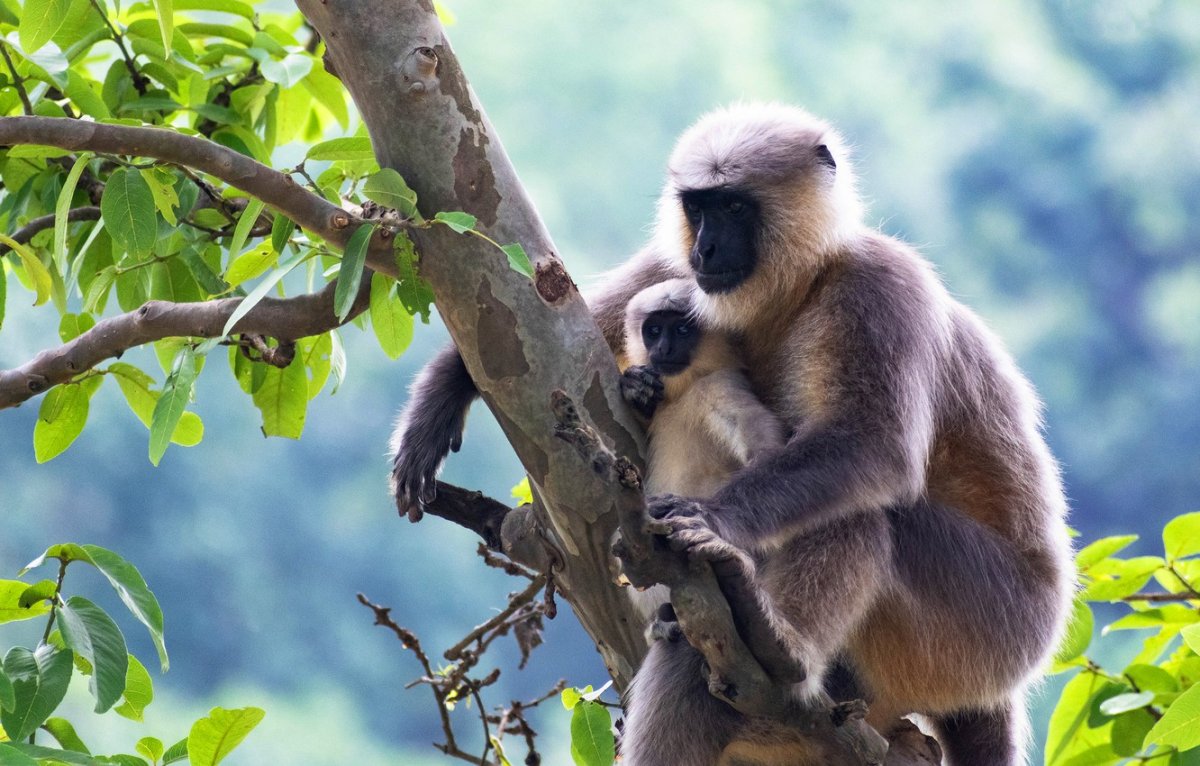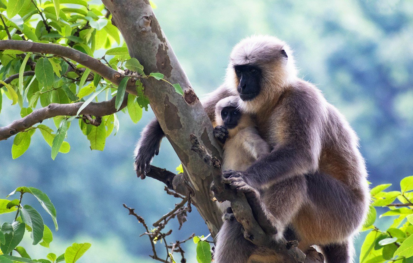 Обезьяна с малышом на ветке