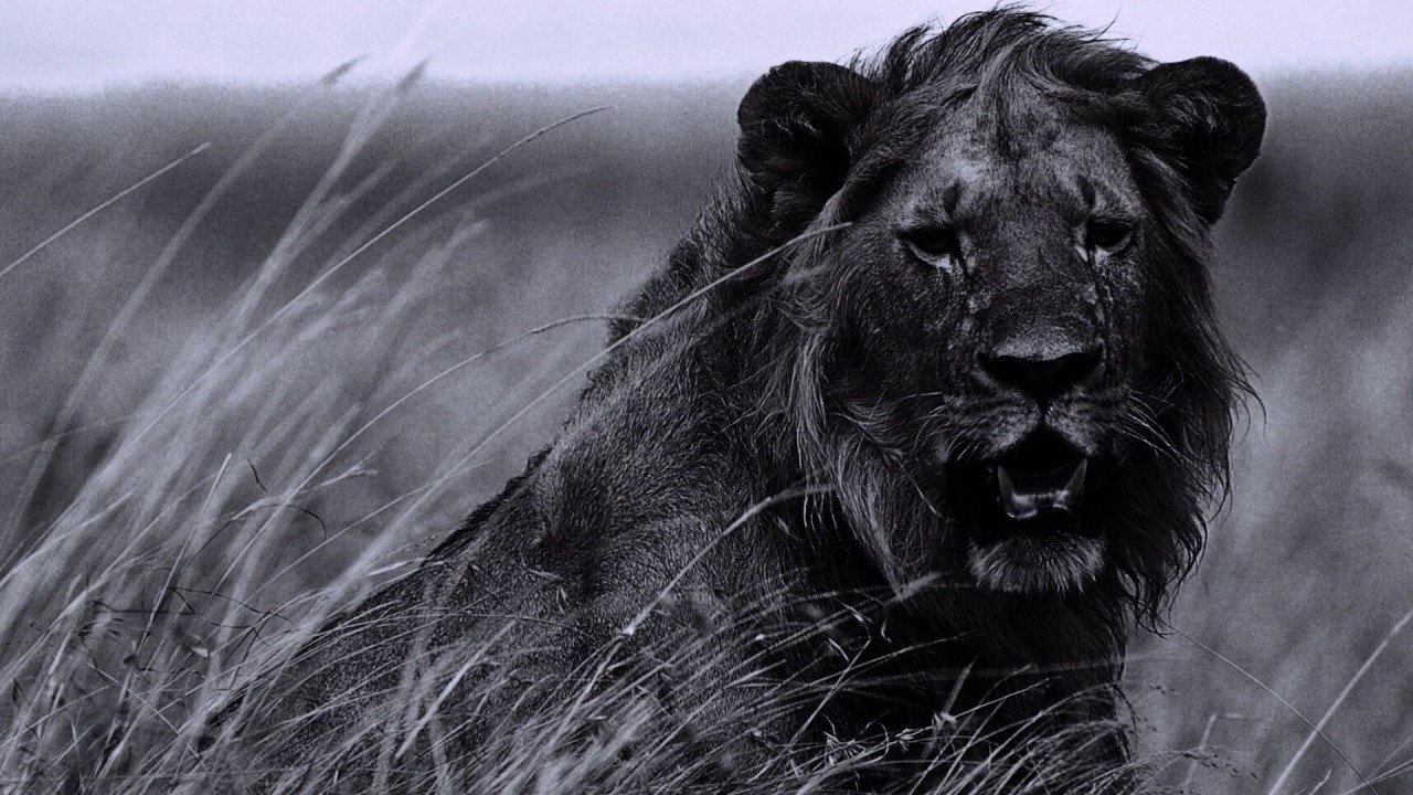 Картинки на рабочий стол Лев черно белый