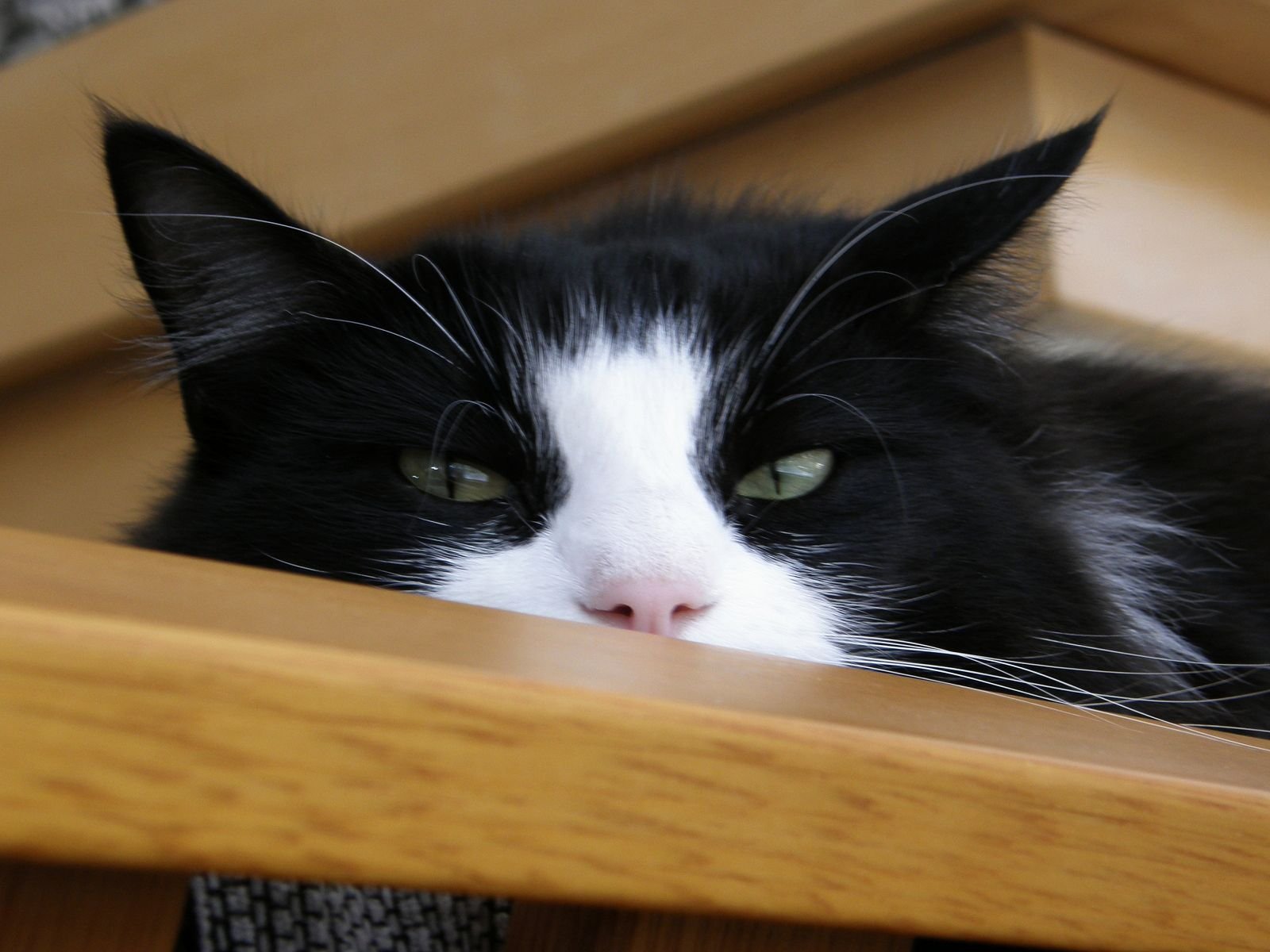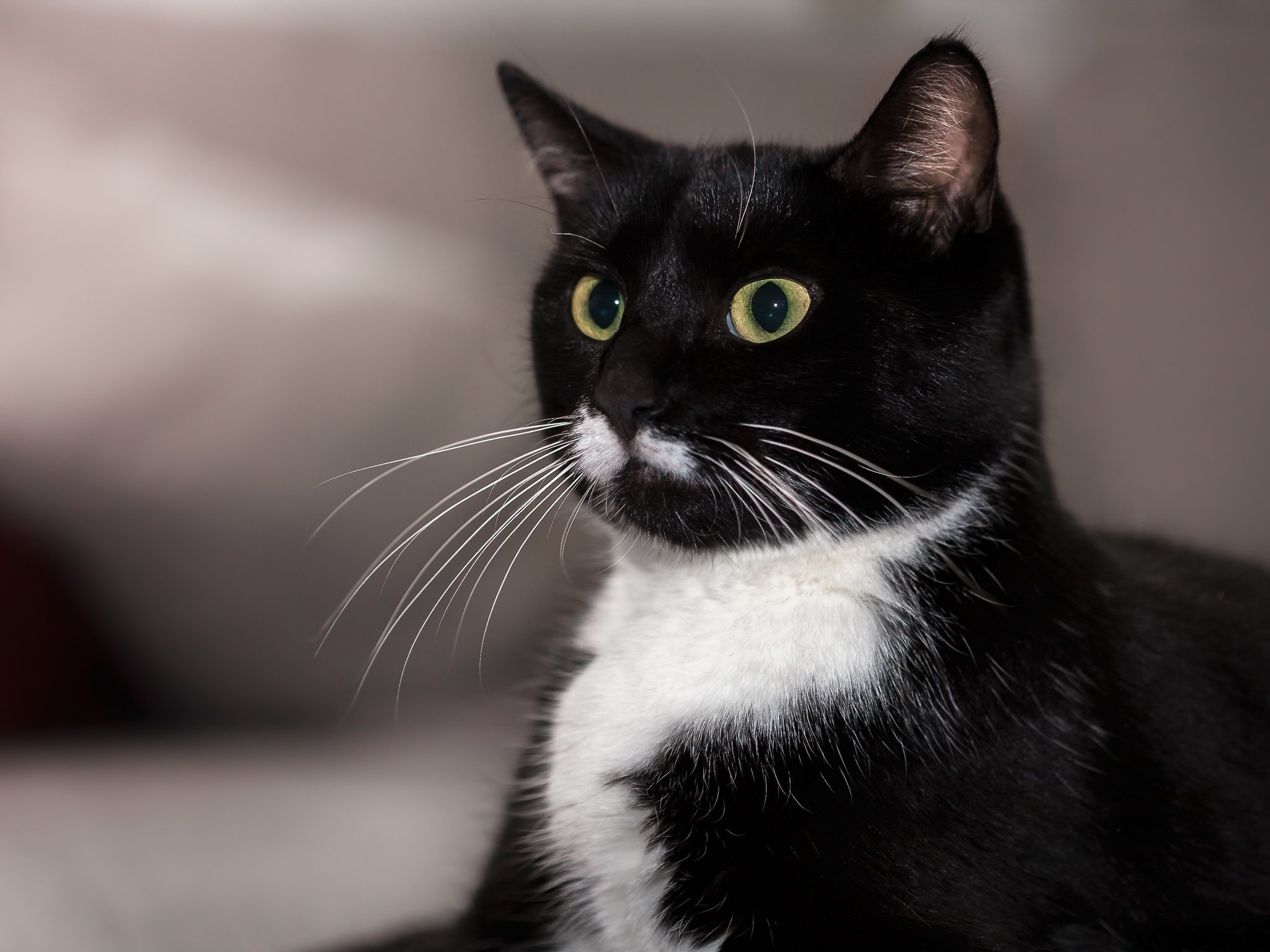 Удивленный кот черно-белый