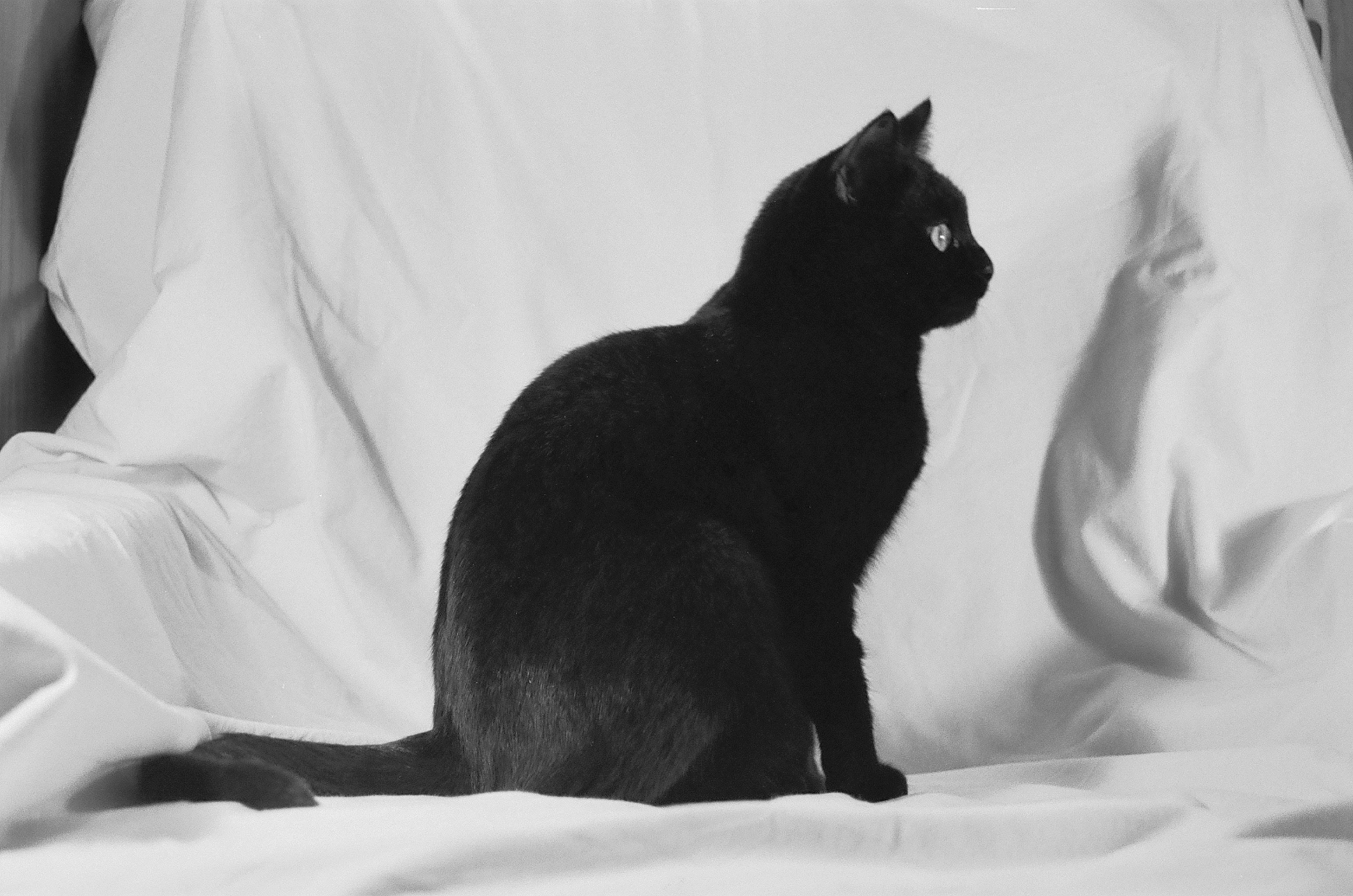 Черный кот на кровати