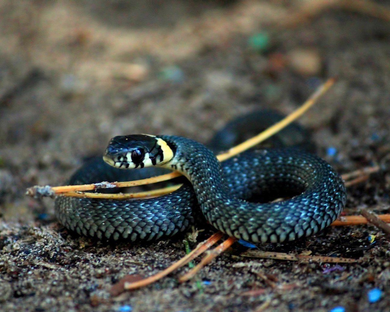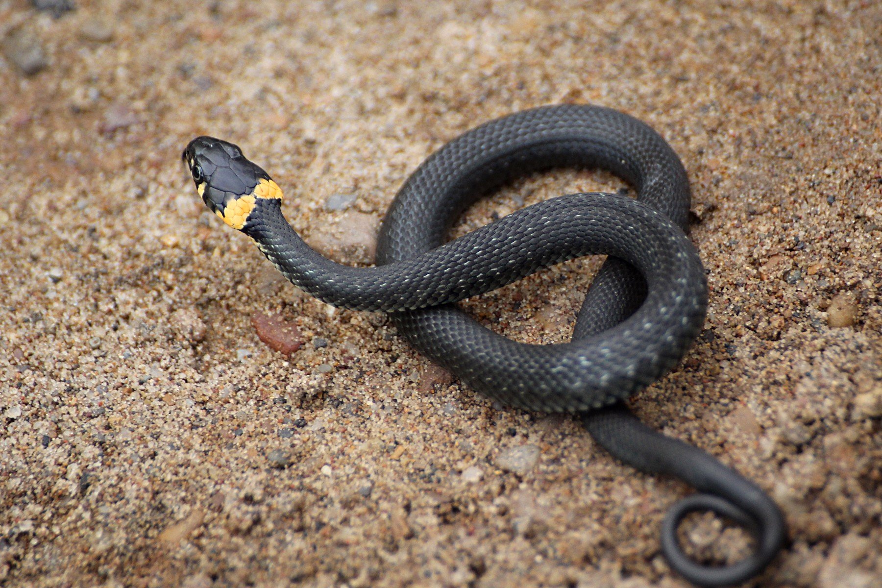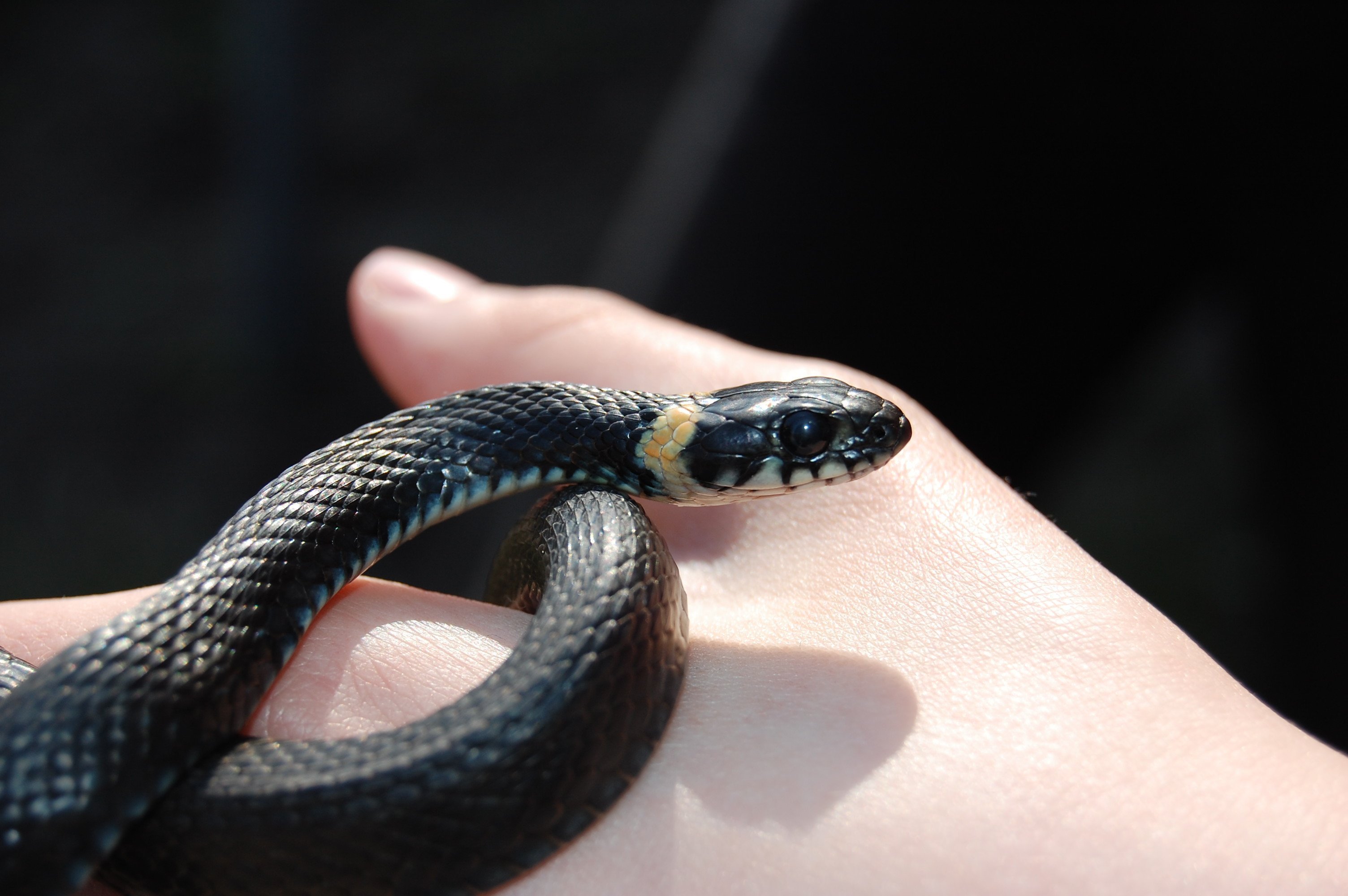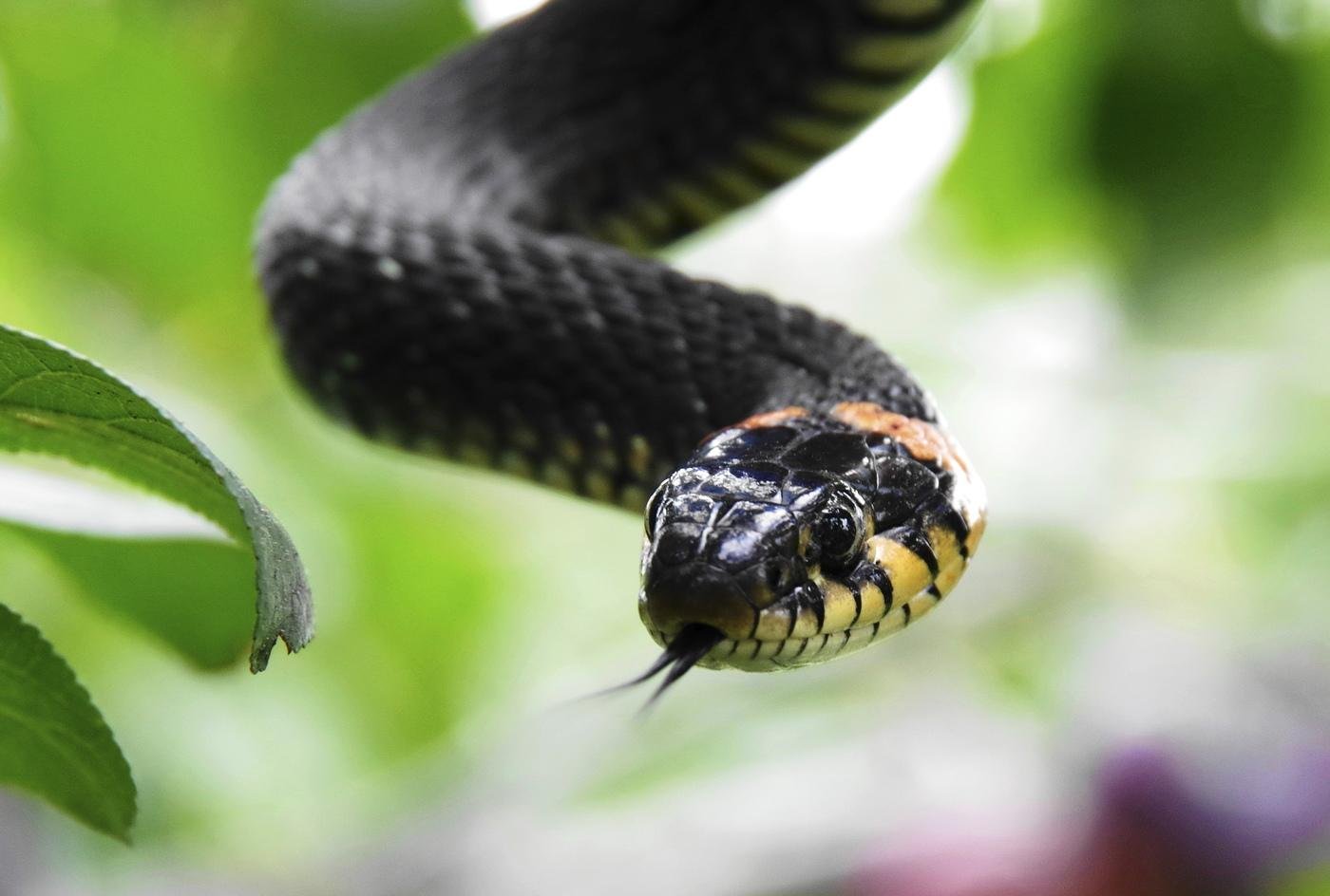 Черная змея с белой головой