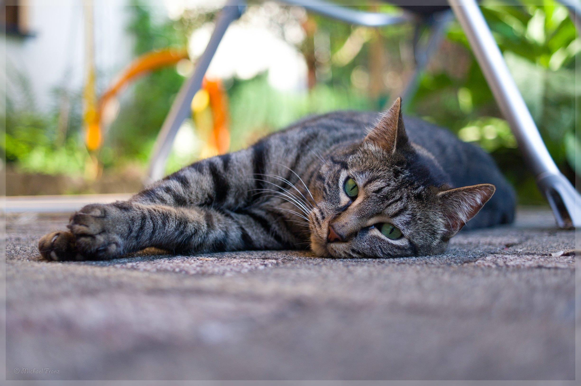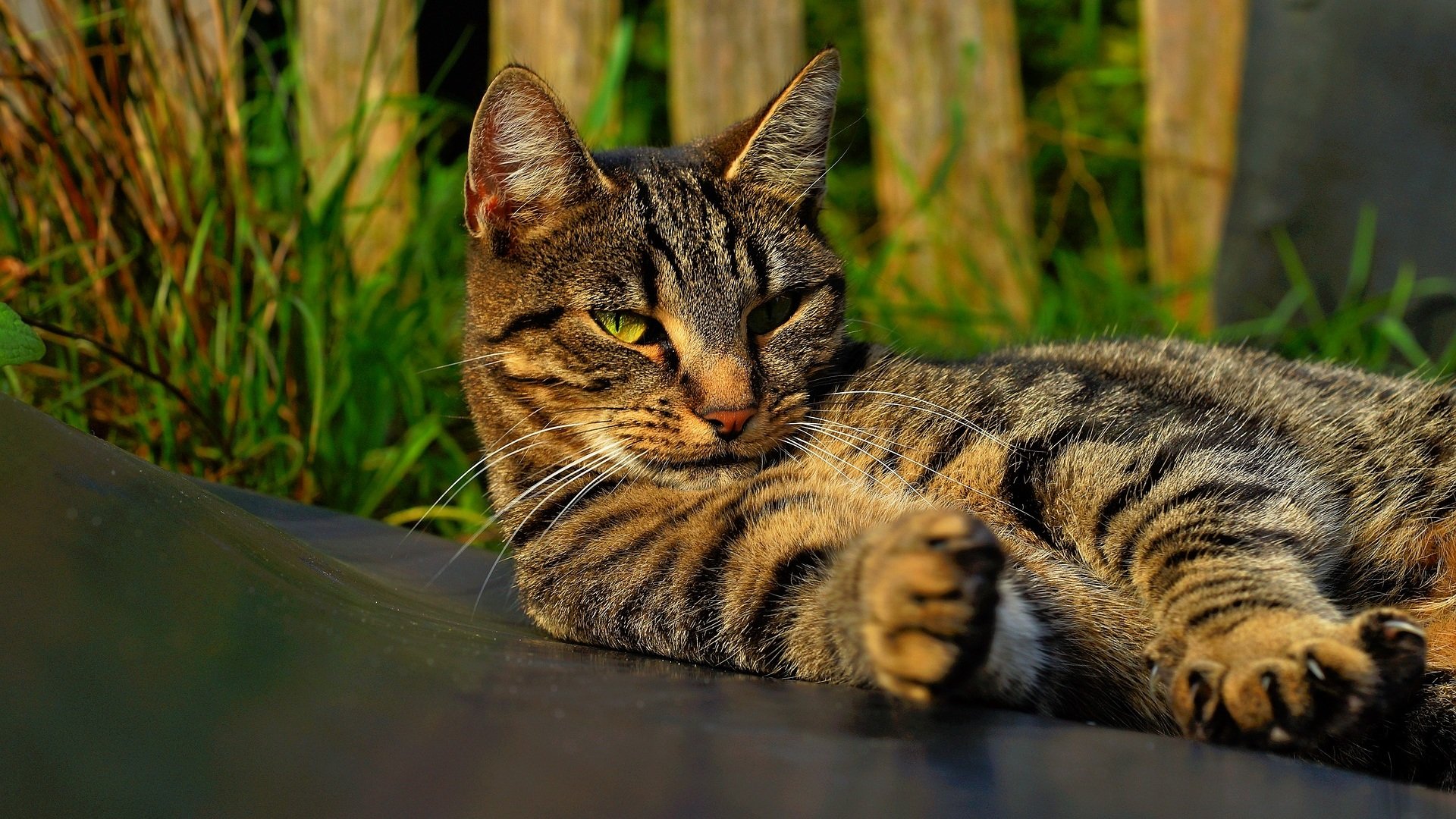 Кот короткошерстный на прогулке