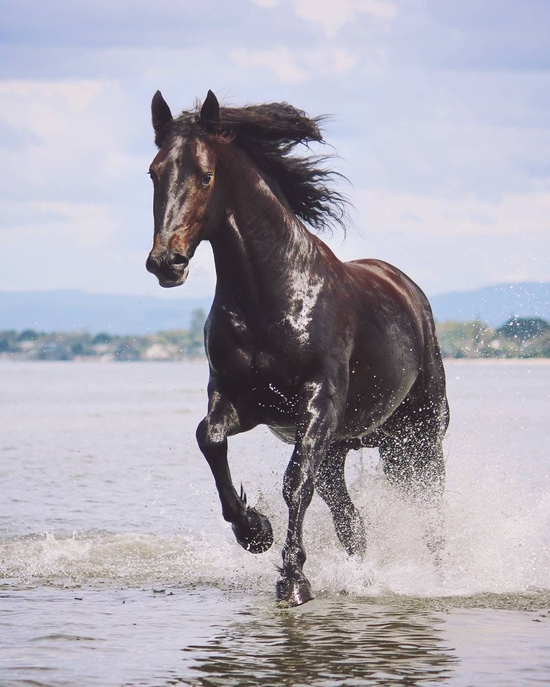 Лошадь бежит по воде