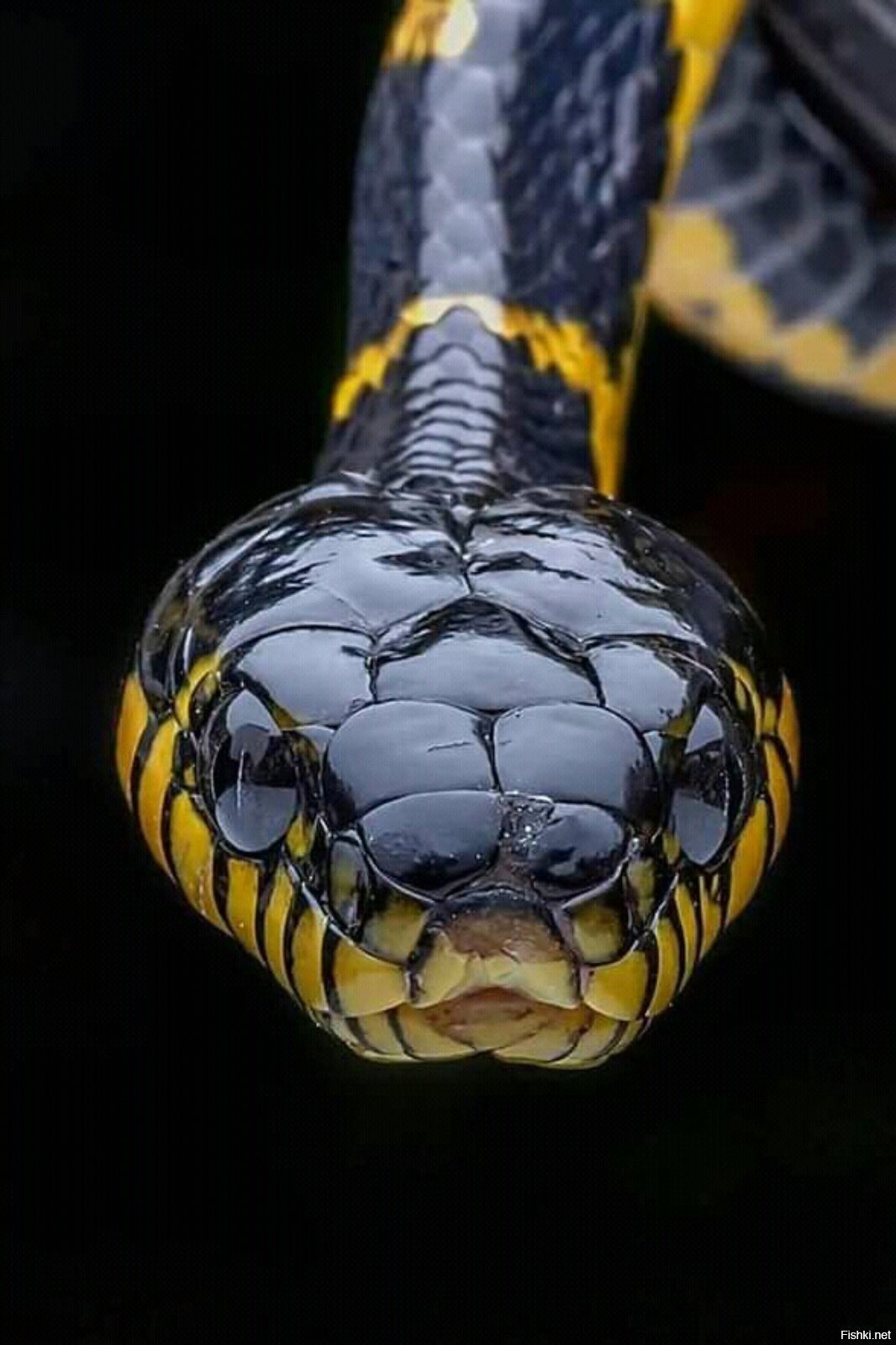 Змея с желтыми полосками на голове