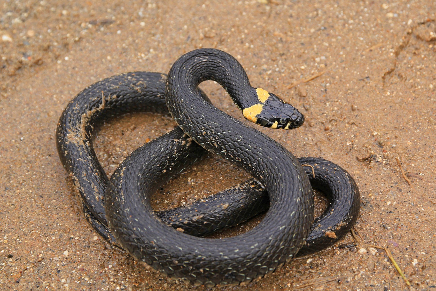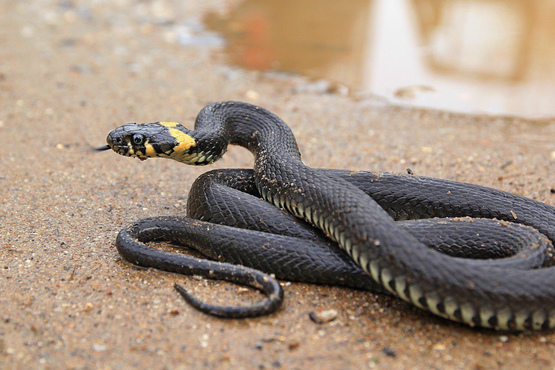 Змея гадюка черная с желтым ошейником