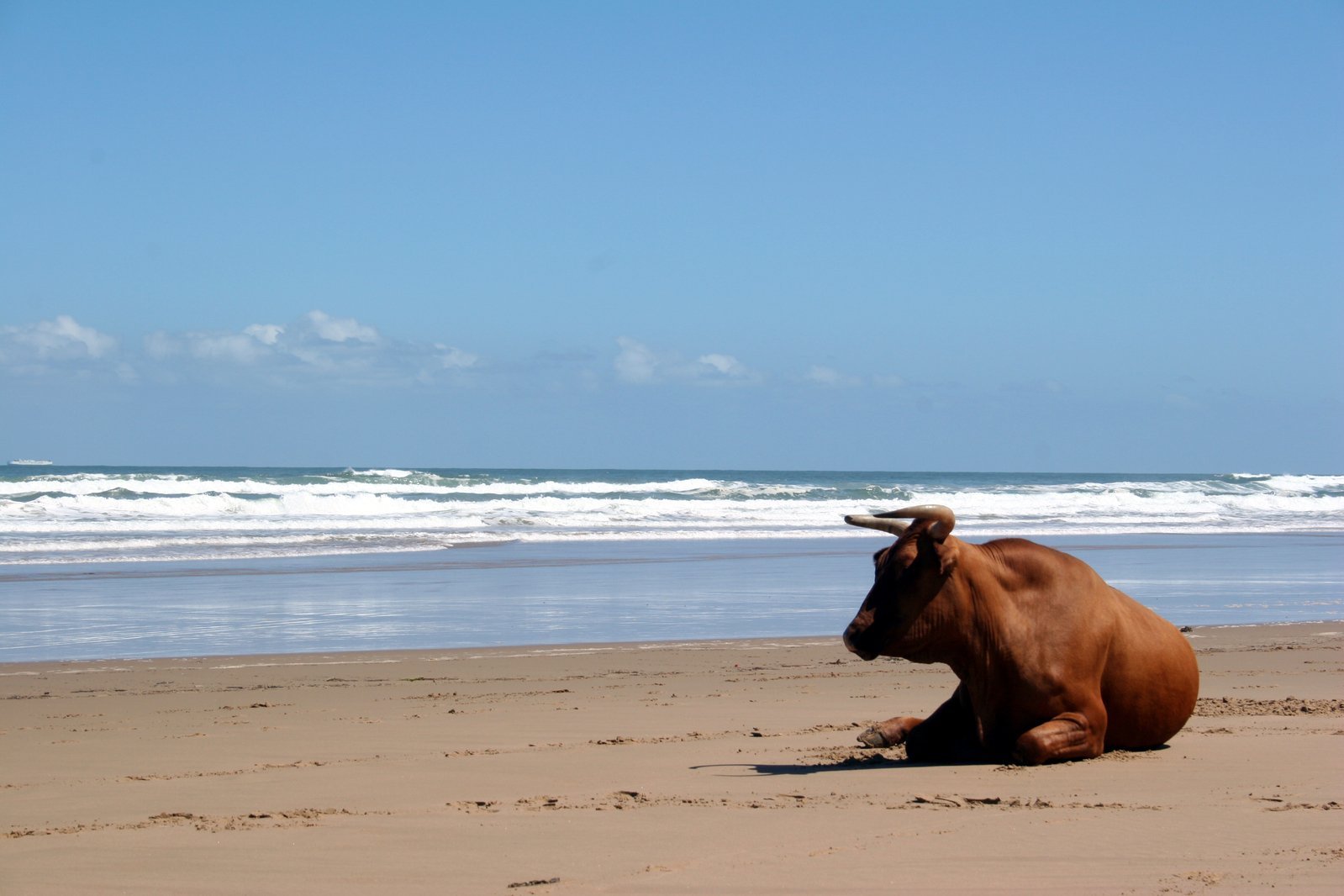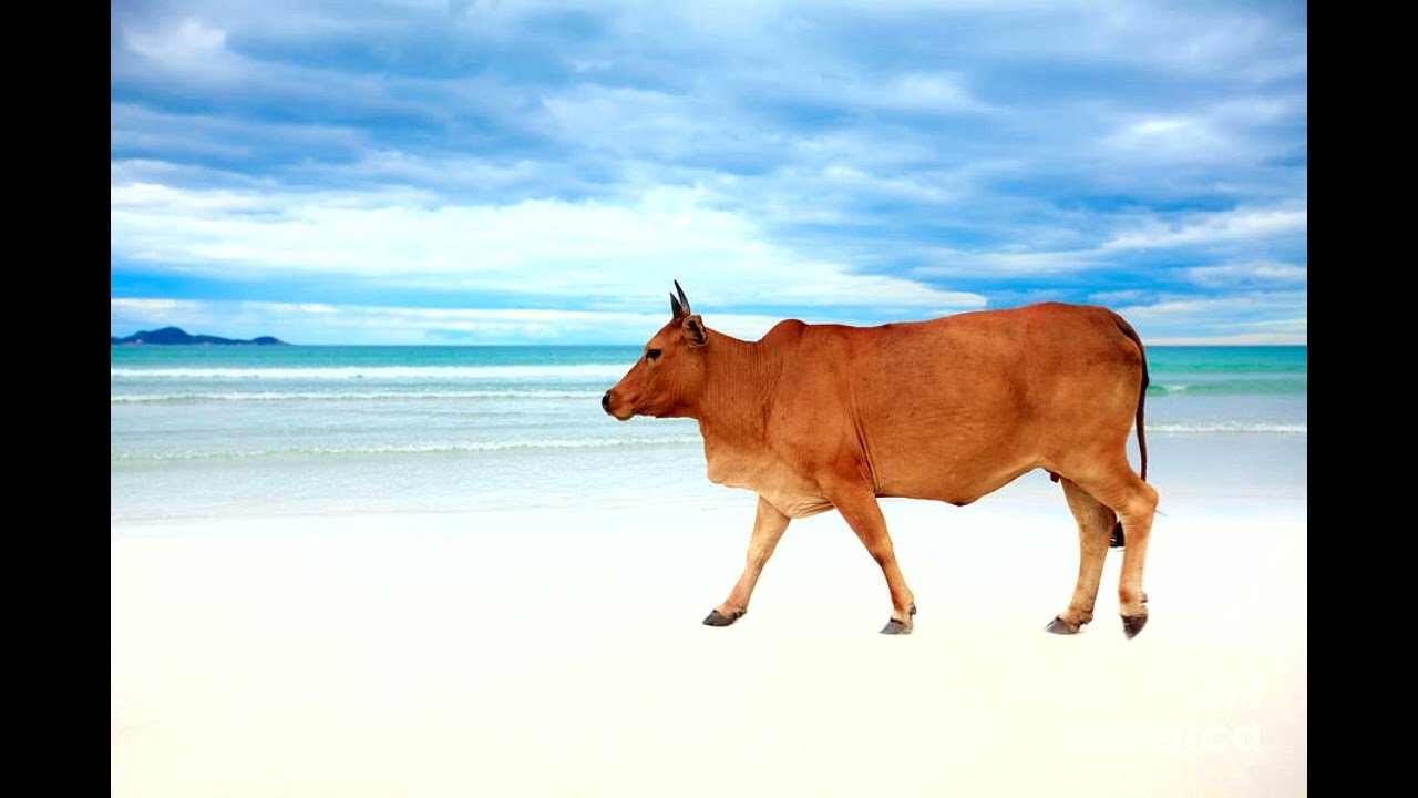 Корова на пляже