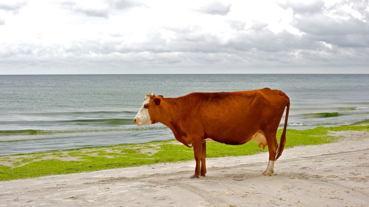 Корова на берегу моря