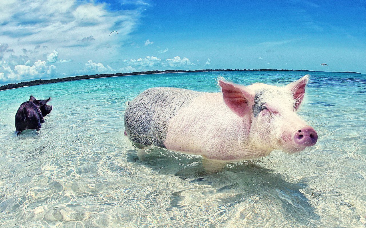 Водоплавающие свиньи Багамы
