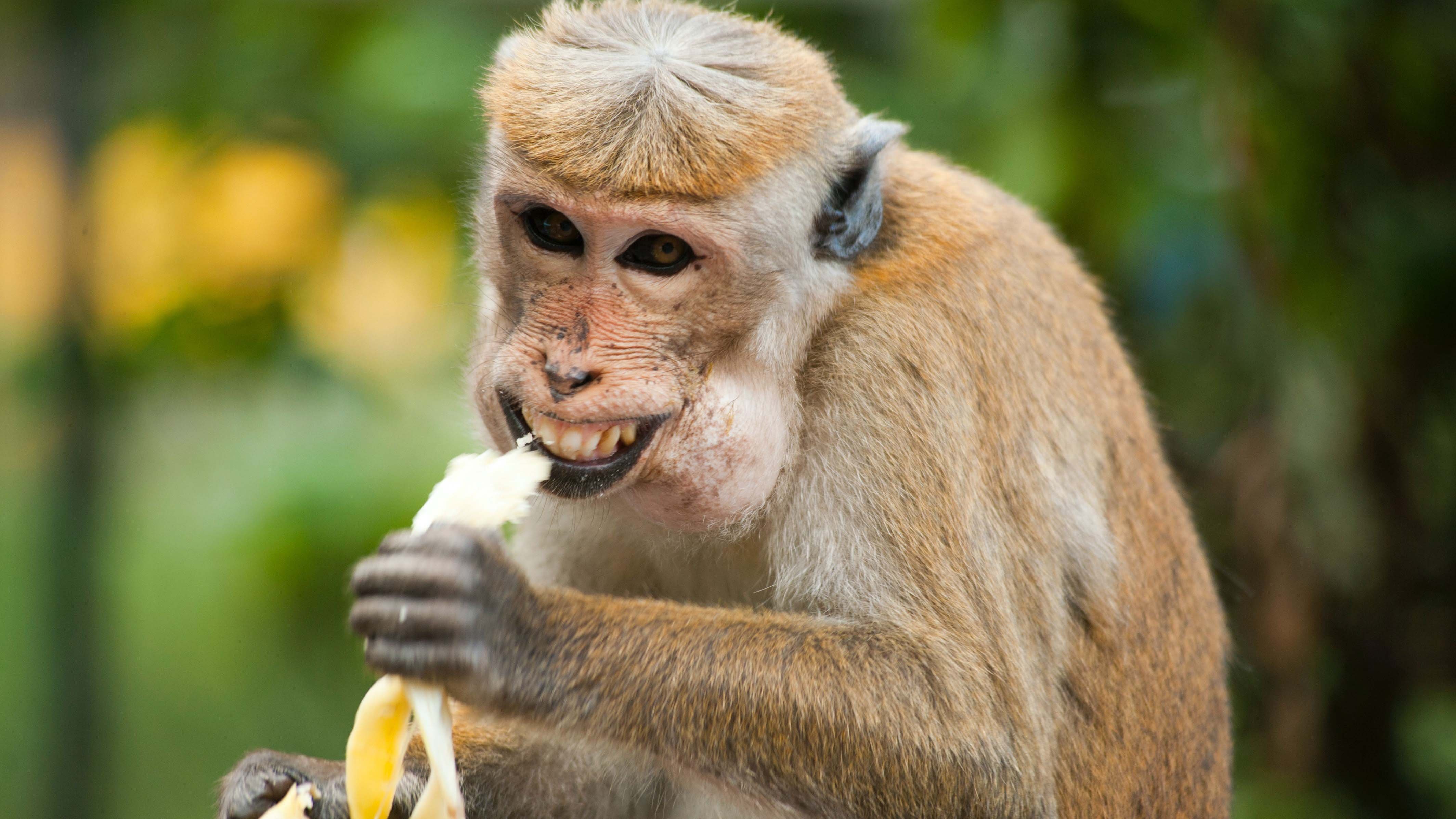 Обезьянка ест банан