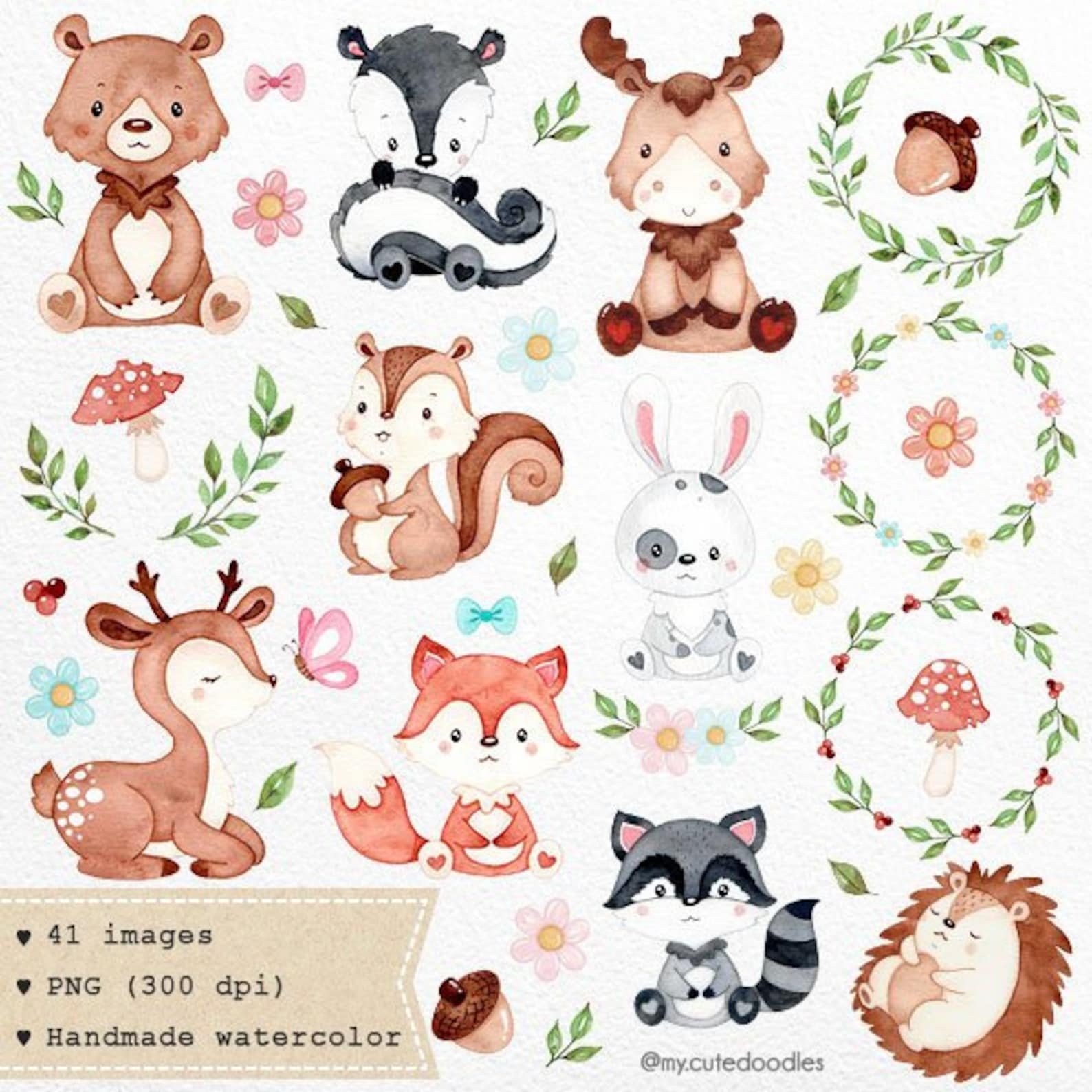 Акварельные животные клипарт
