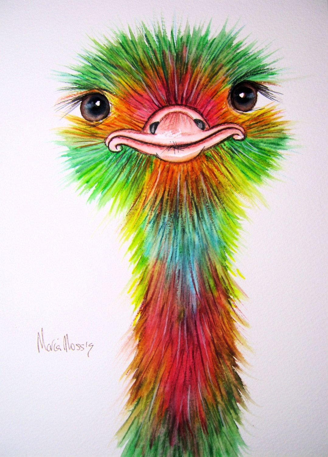 Рисование страуса вилкой