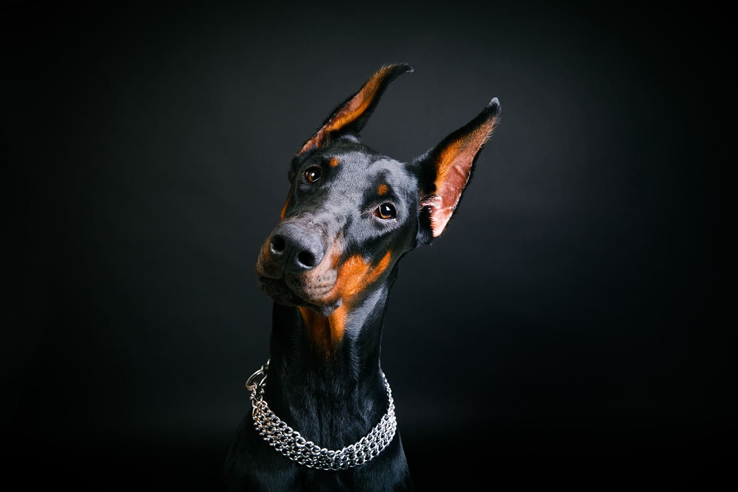 Чёрные обои с доберманом