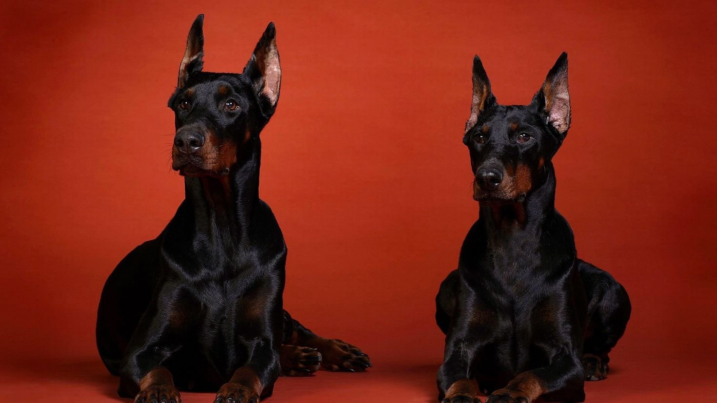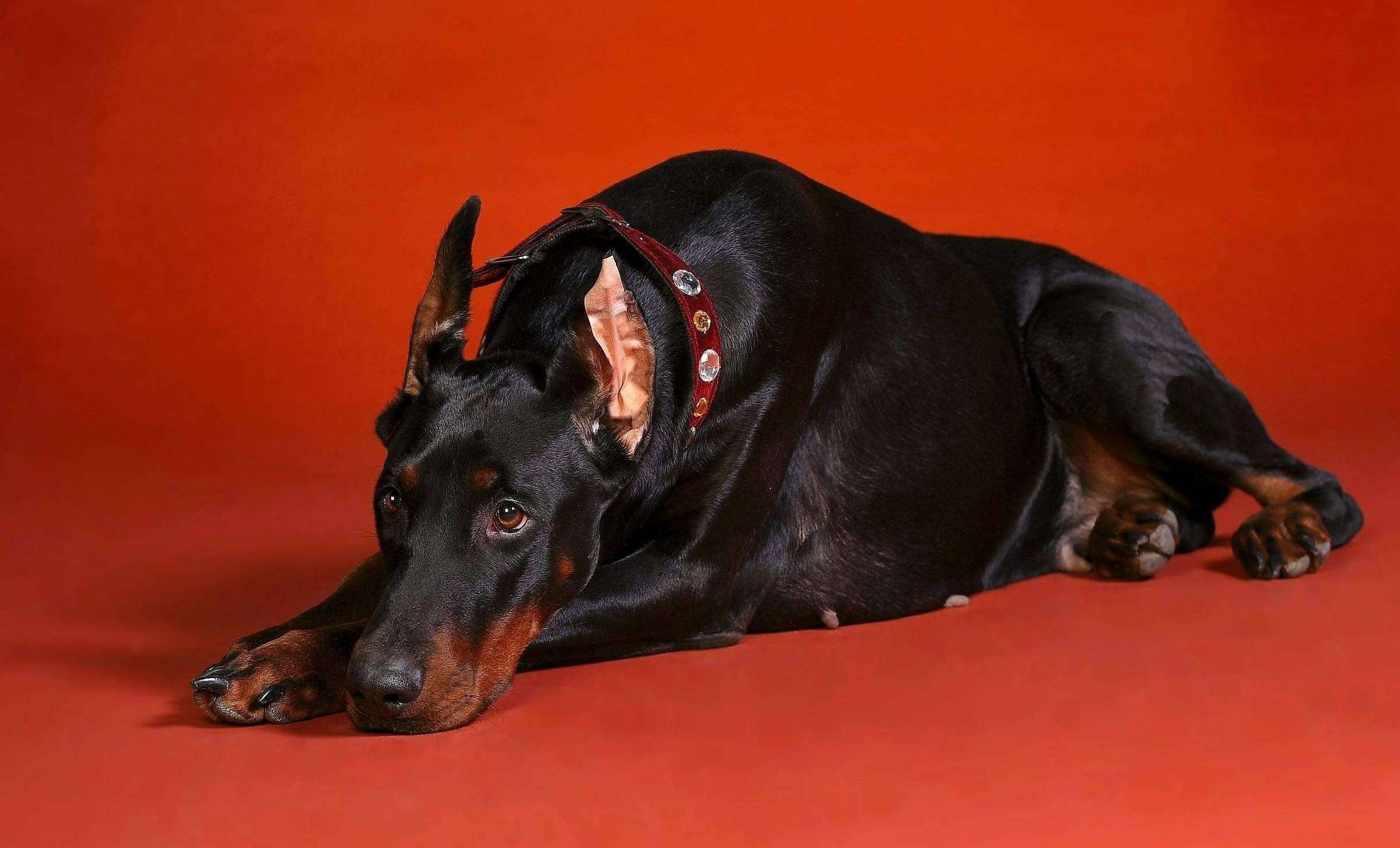 Доберман на Красном фоне