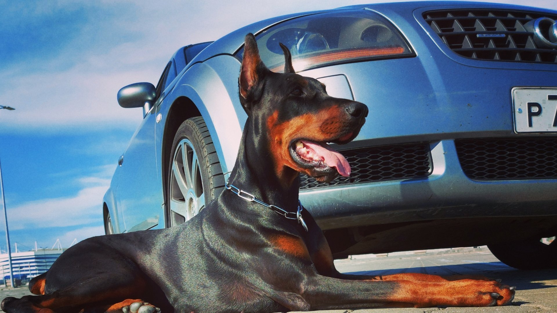 Девушка Доберман машина