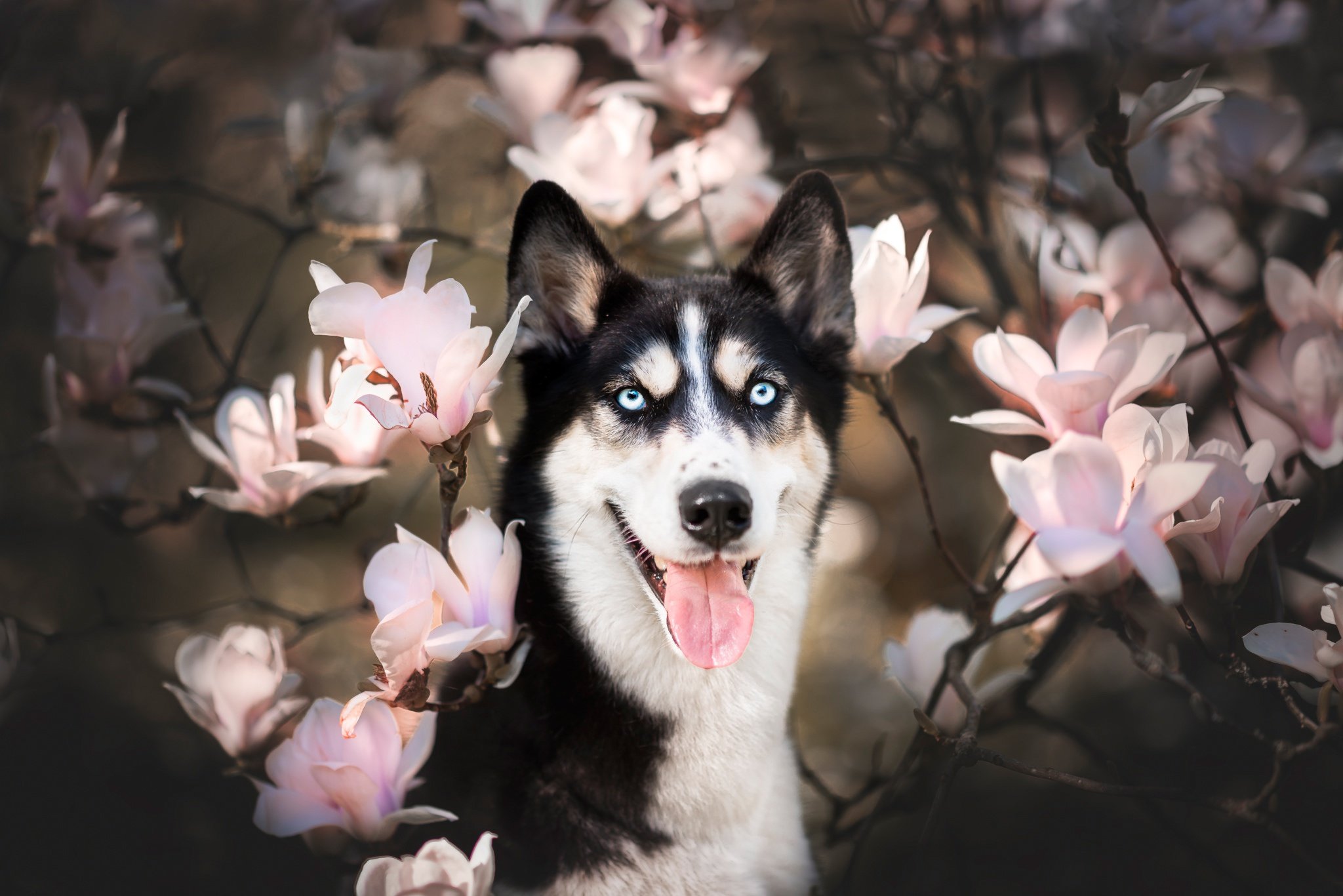 Хаски с цветами