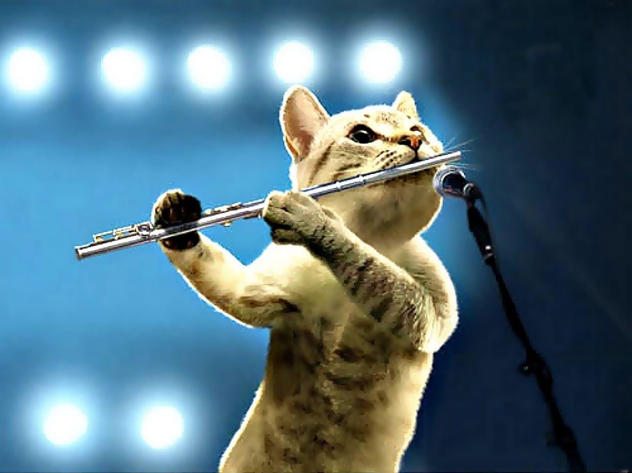 Кот с музыкальным инструментом