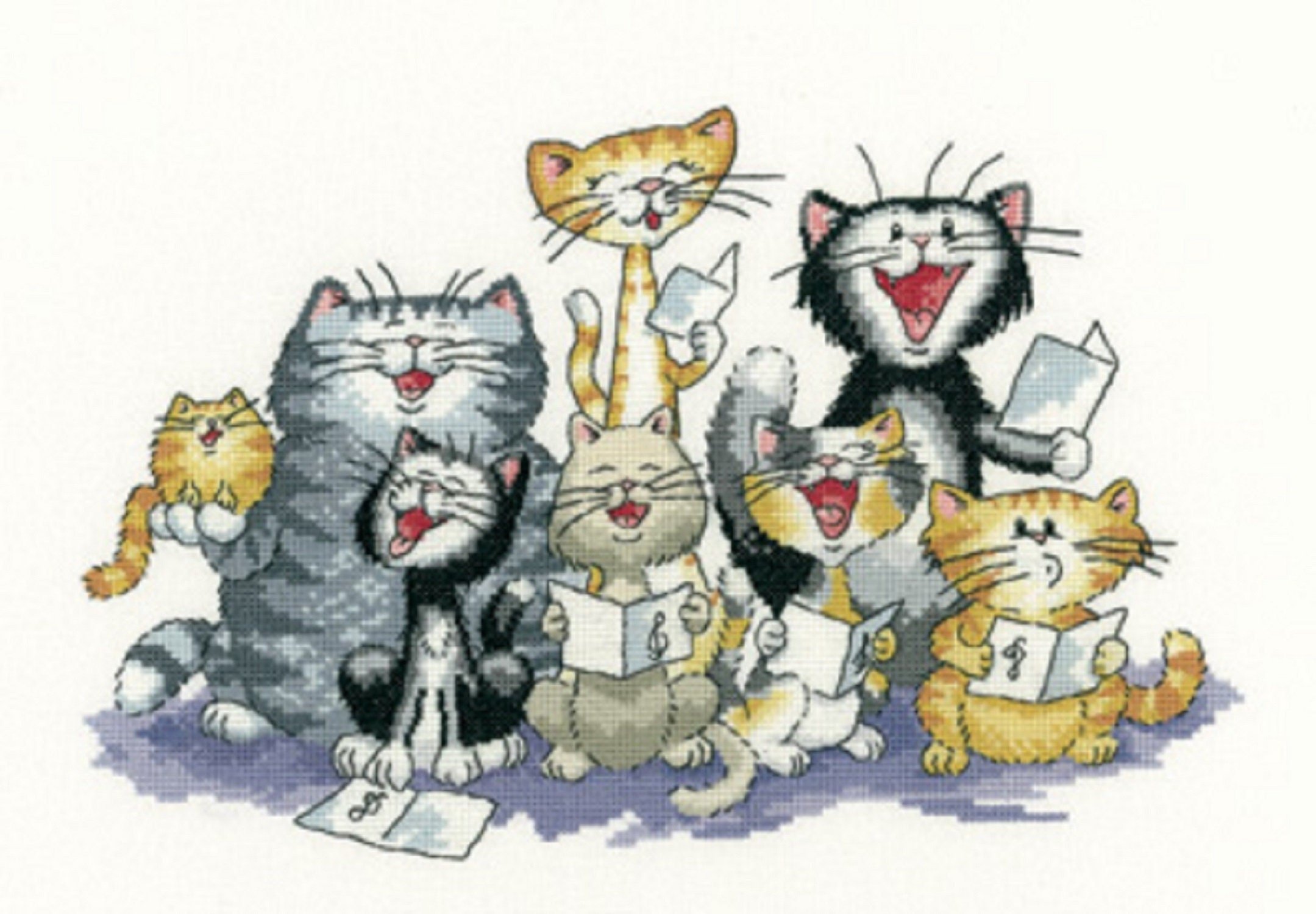 Вышивка крестом коты поют