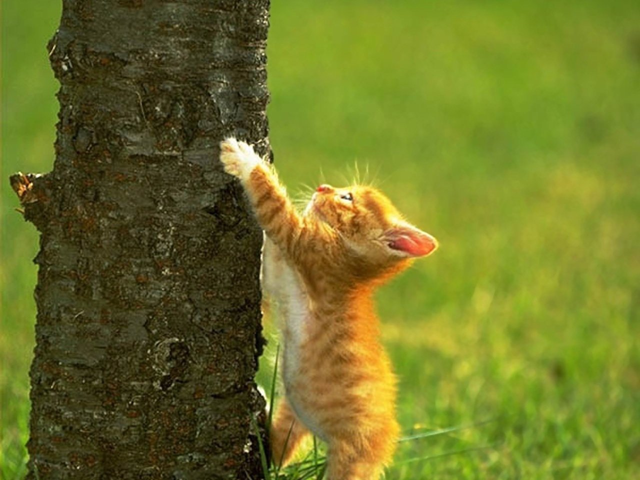 Кошка лезет на дерево