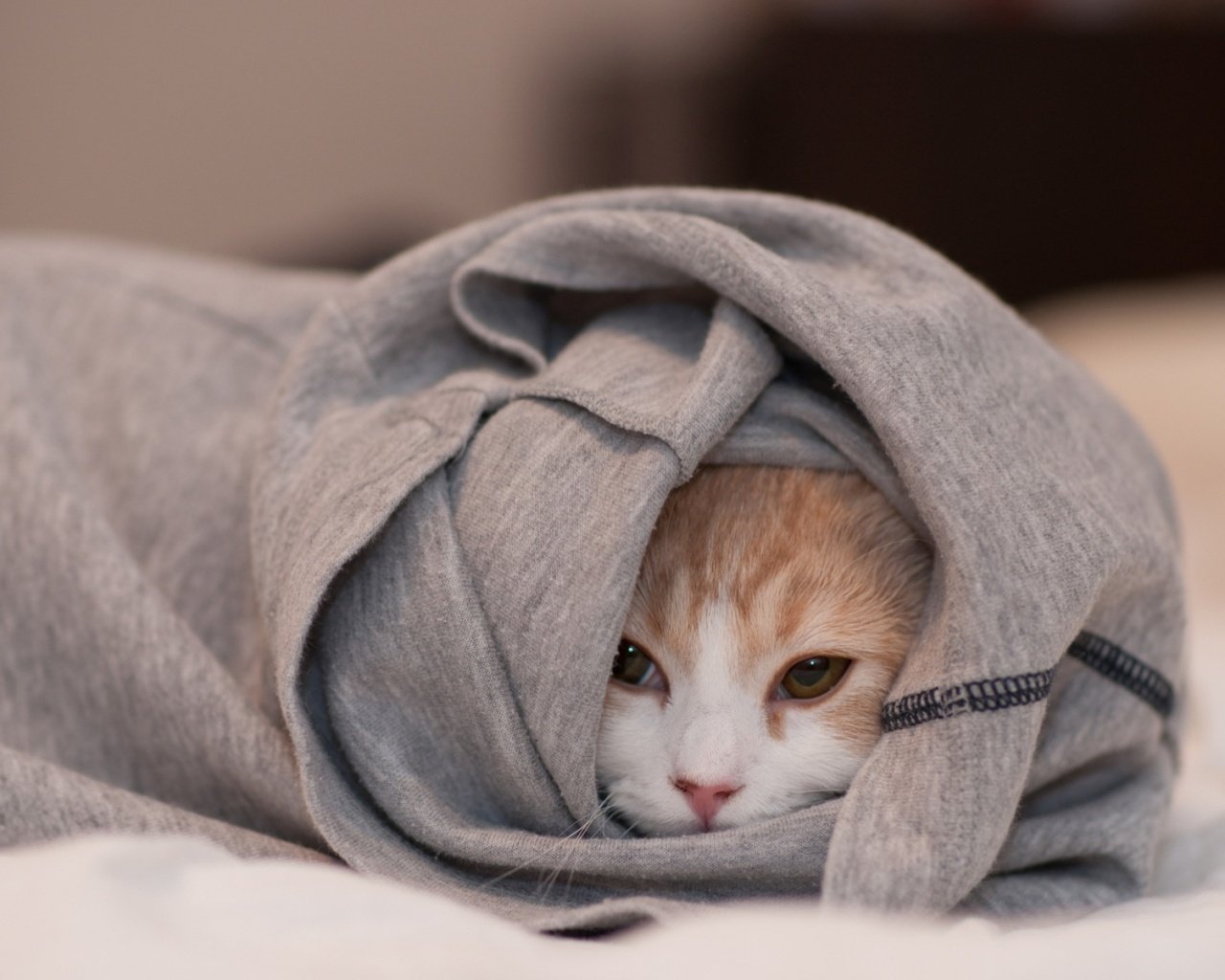 Котик укутанный в одеяло