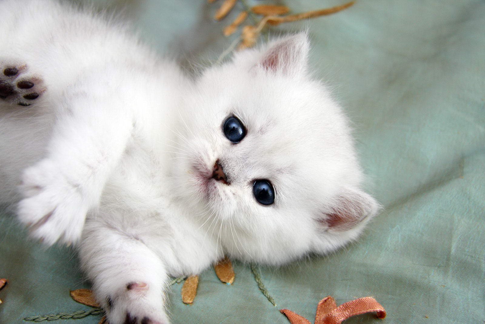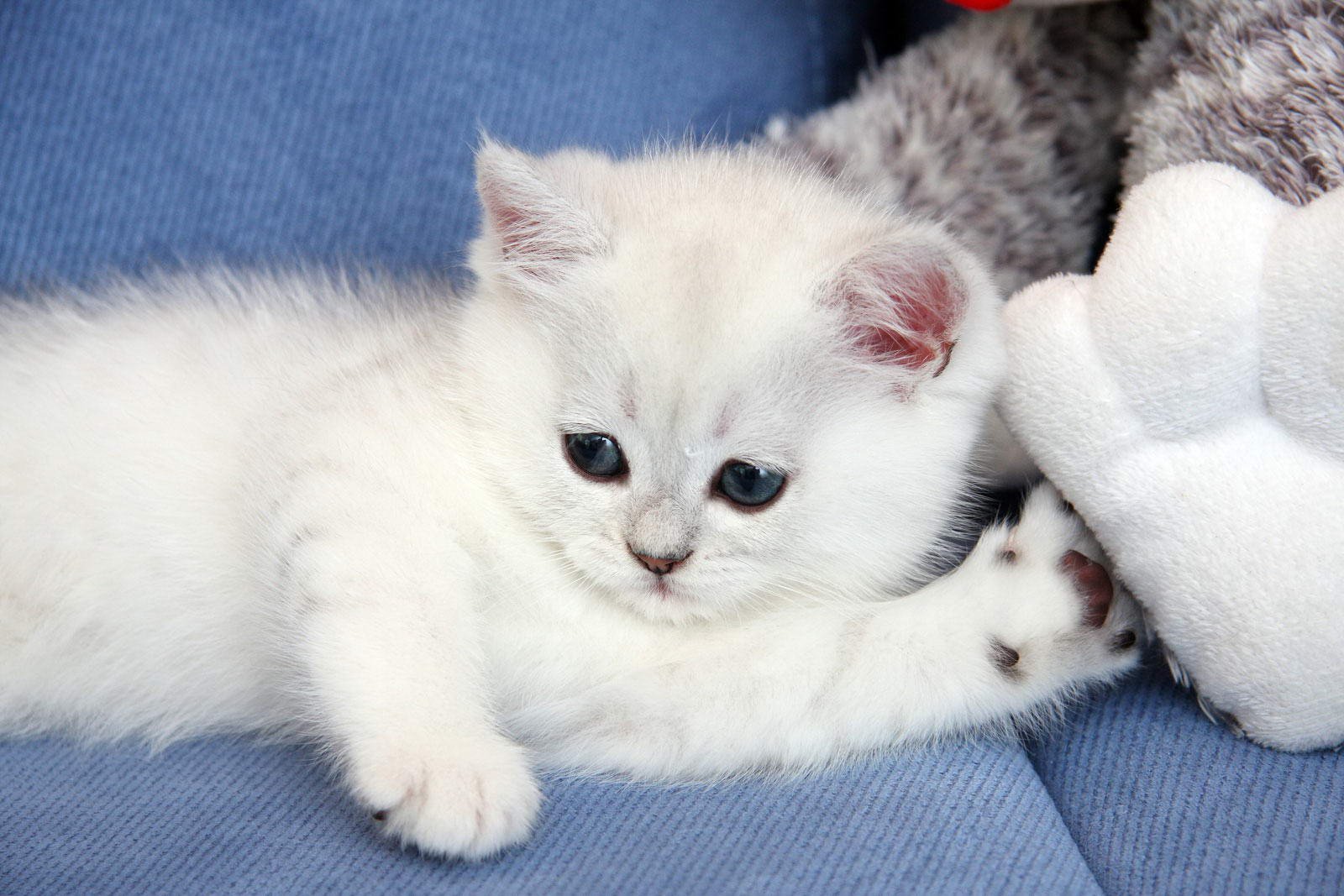 Белый пушистый котенок