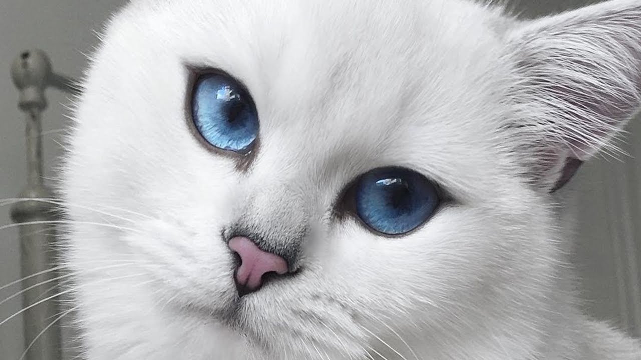 Белый кот с серыми глазами