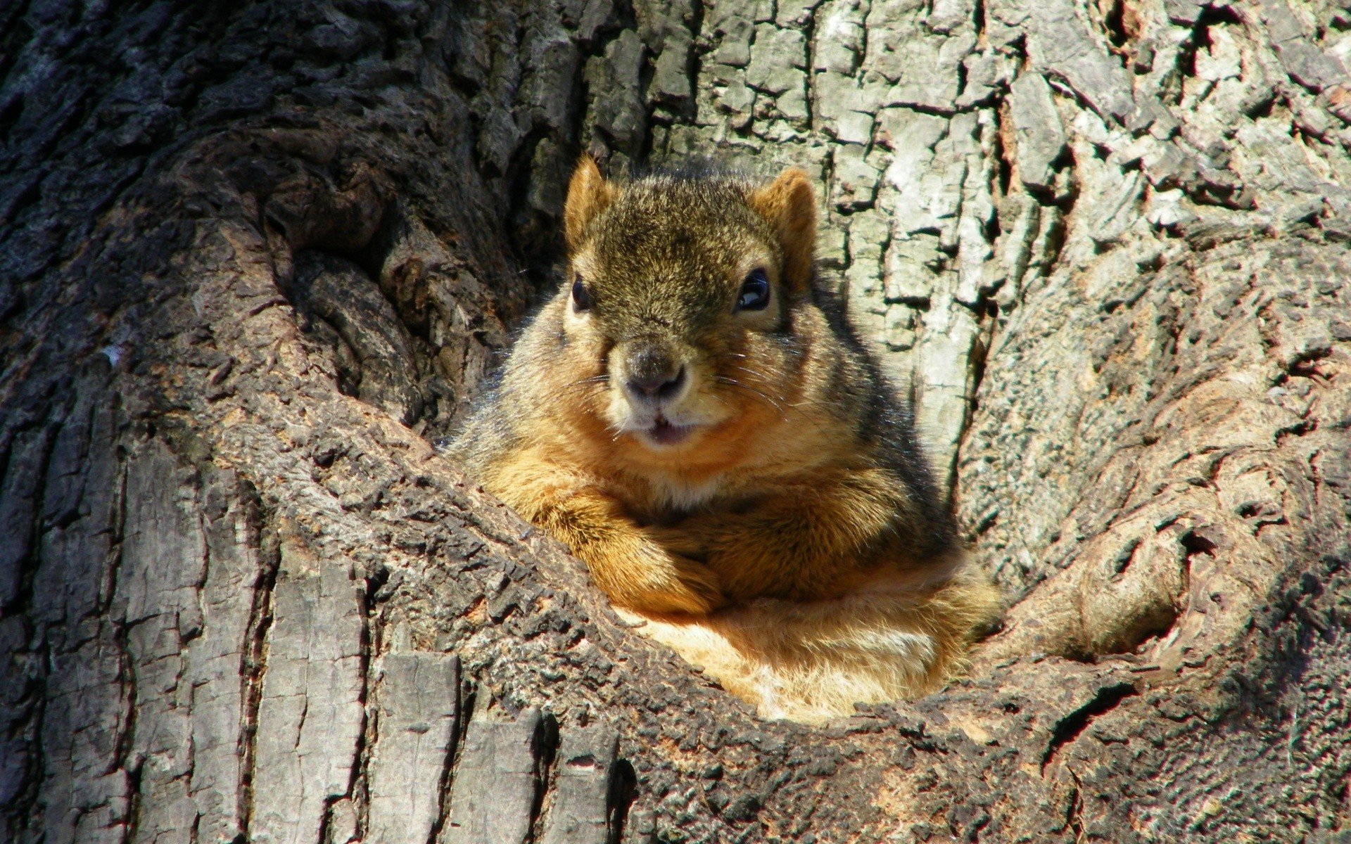 Белка лезет в дупло