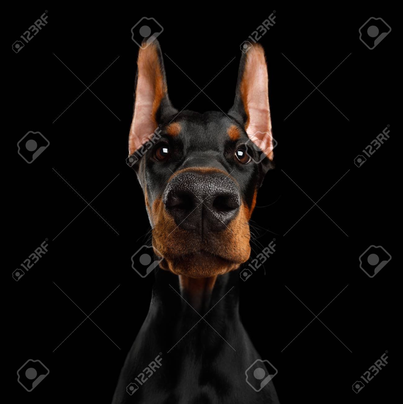 Чёрный Доберман на чёрном фоне