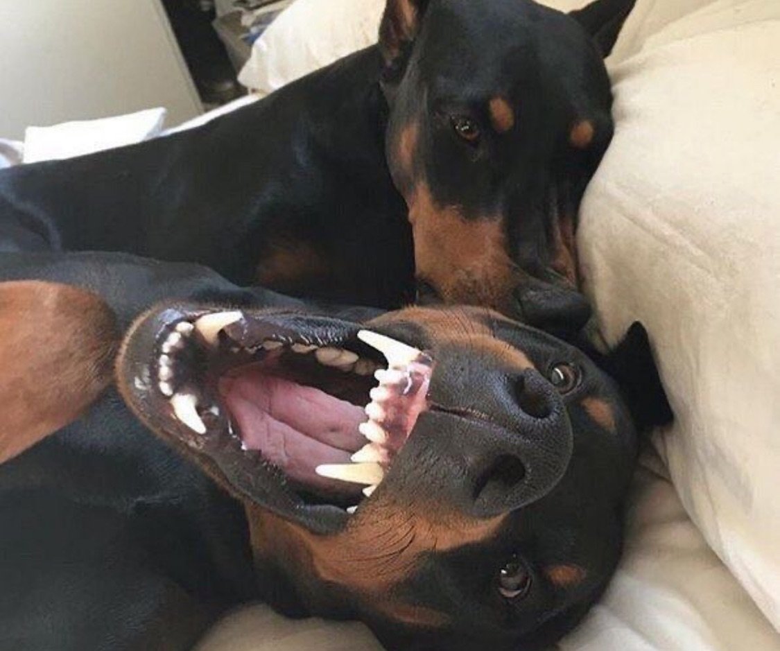 Доберман с жвачкой