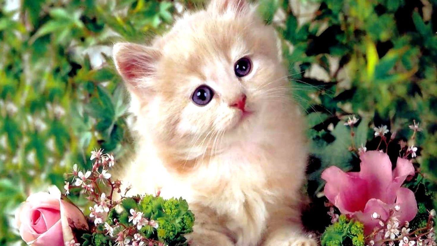 Котики на фоне цветов