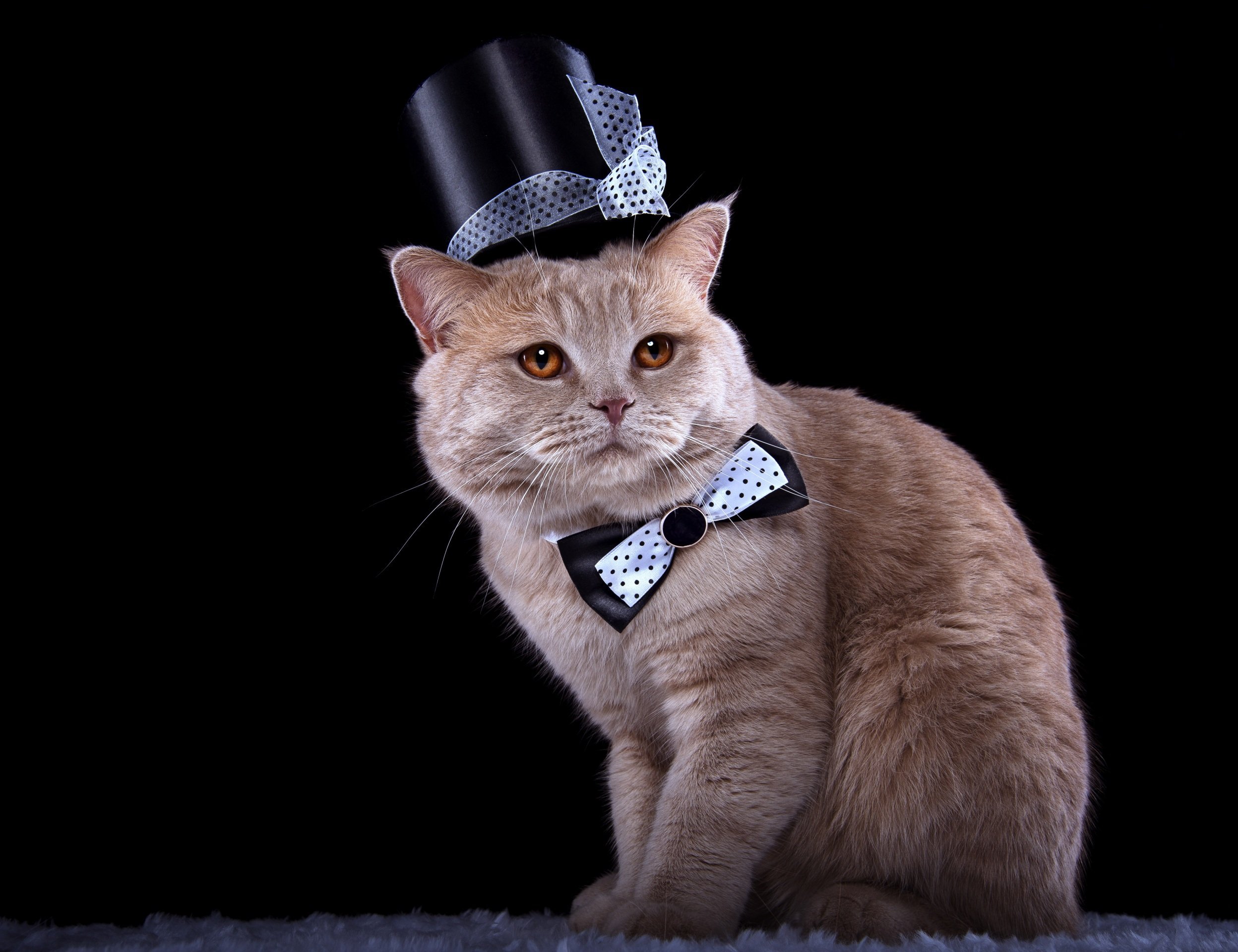 Котик в шляпке в черной