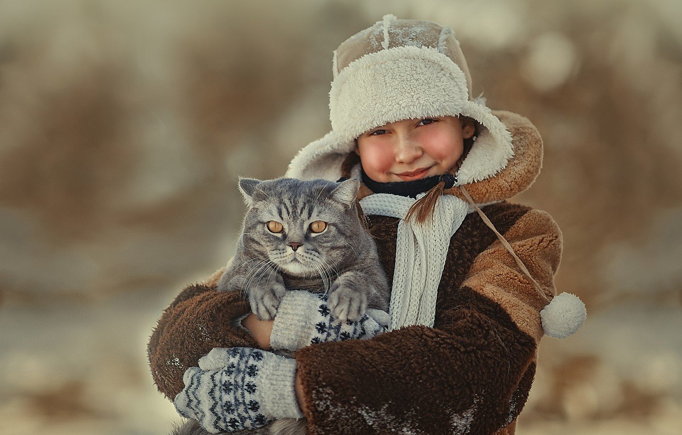 Девочка с котом зима