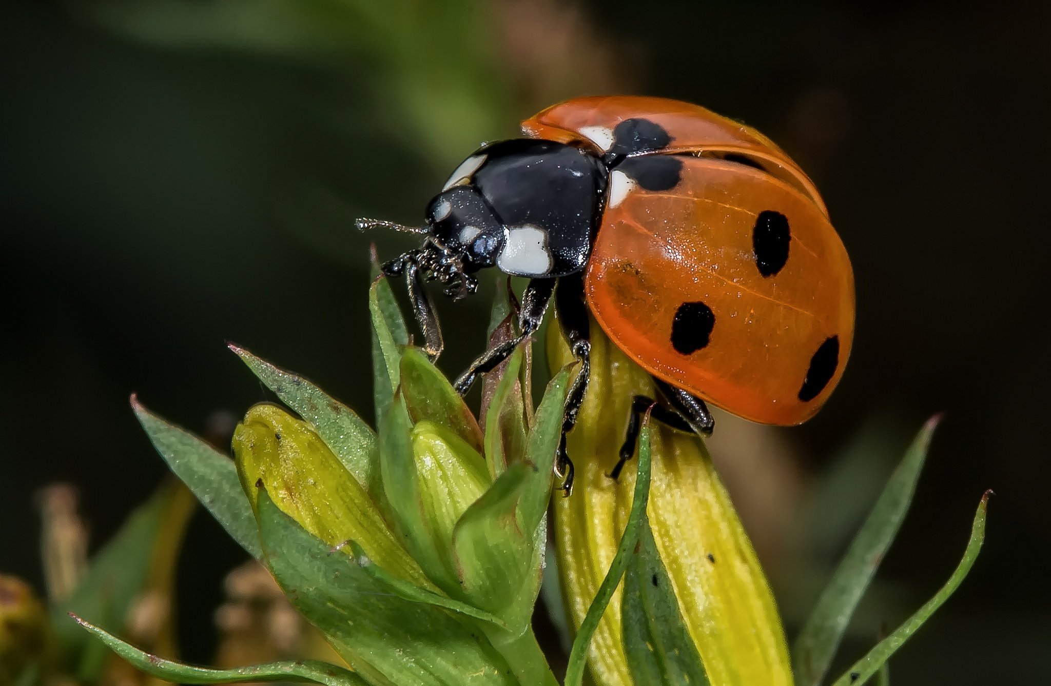 Жёлтая Божья коровка с чёрными пятнами
