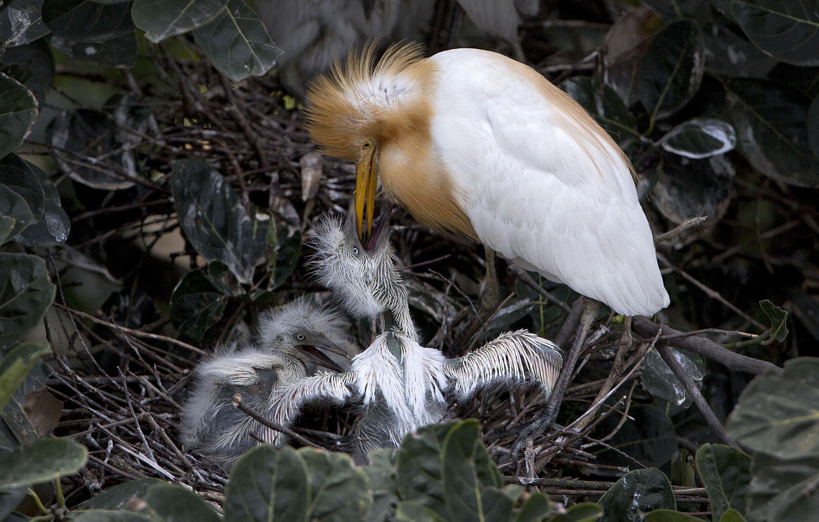 Кормление птенцов цаплей