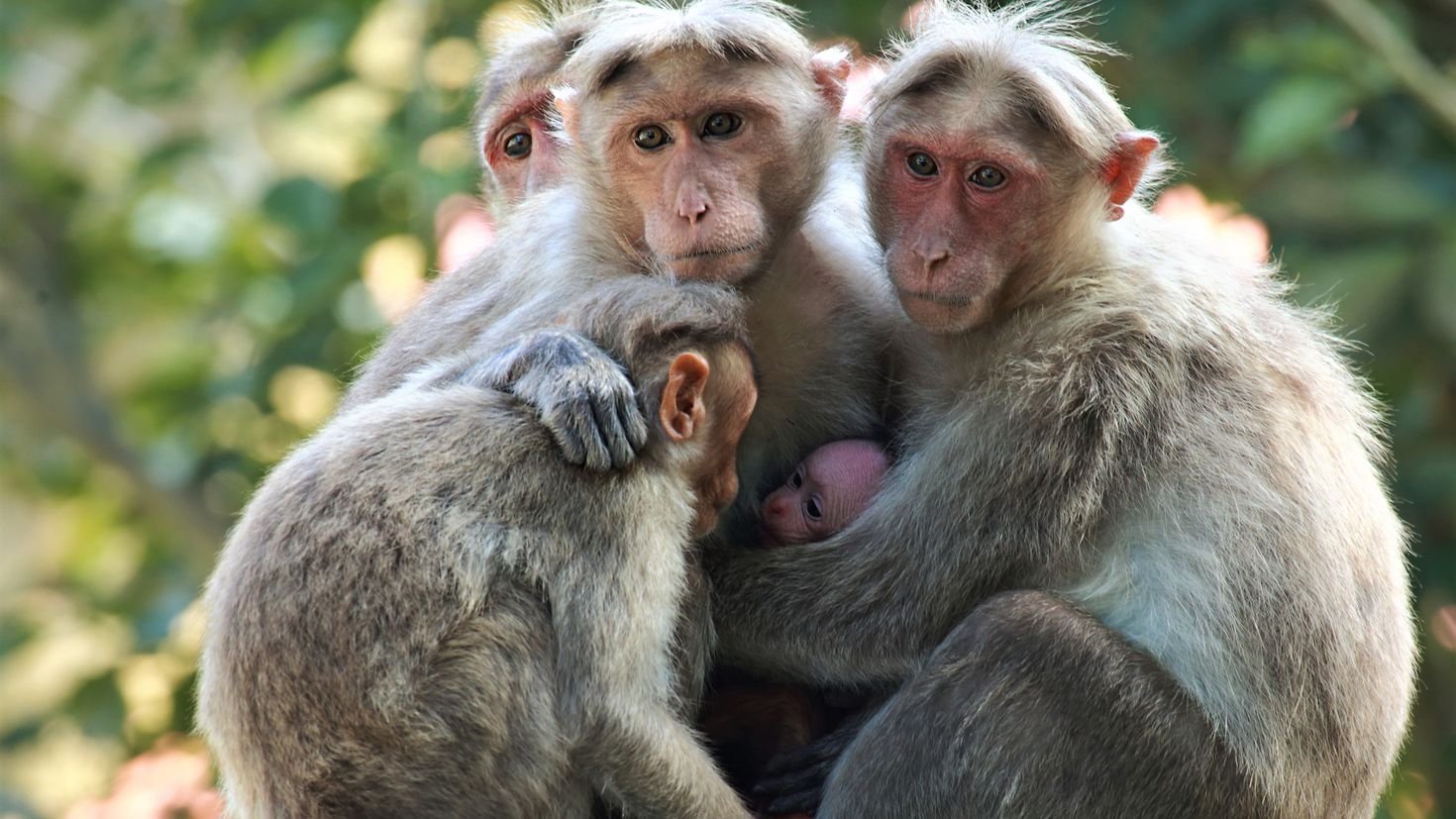 Обезьяны сидят в обнимку