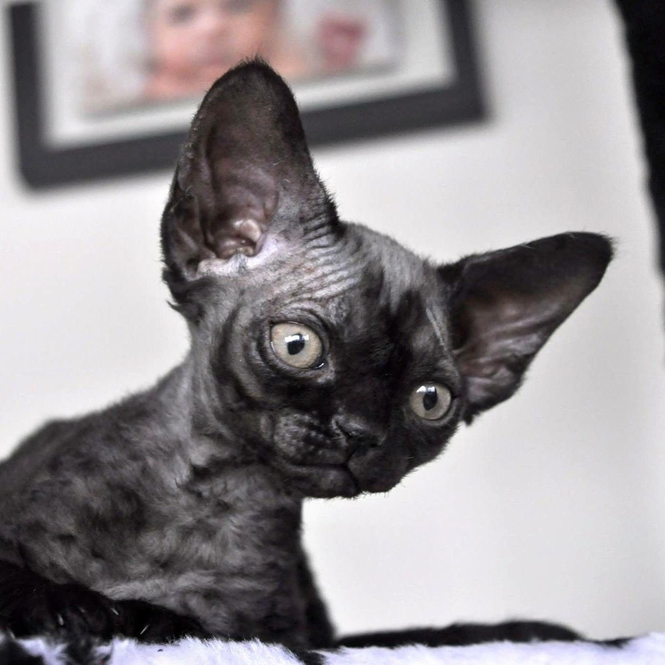 Девон рекс черный котенок