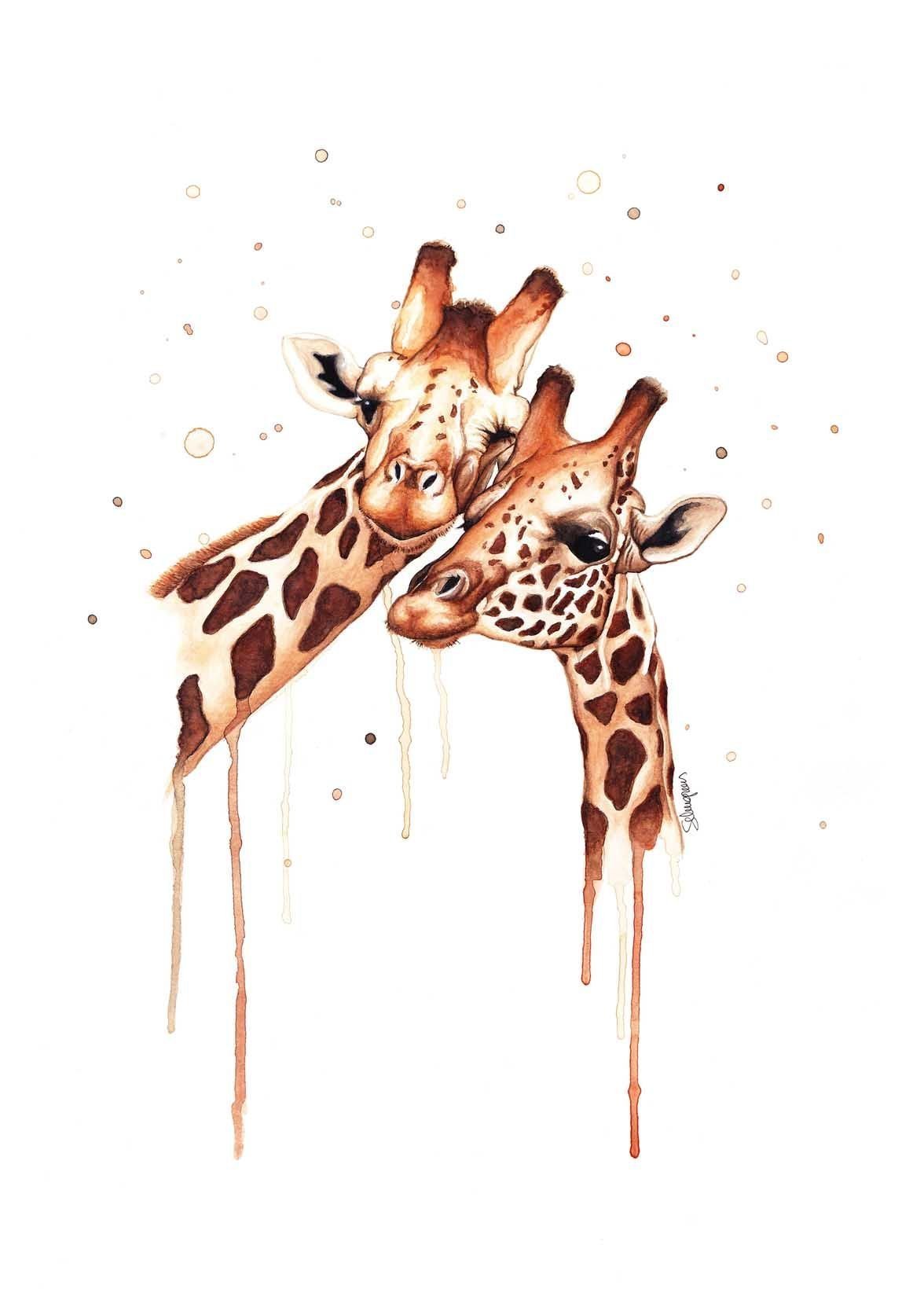 Жираф акварель