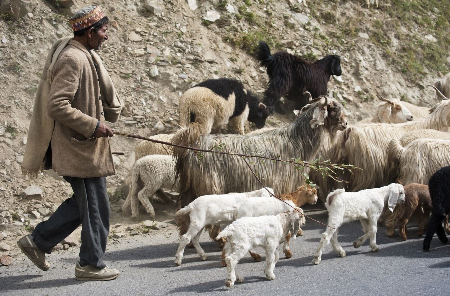 Мужчина пасет овец