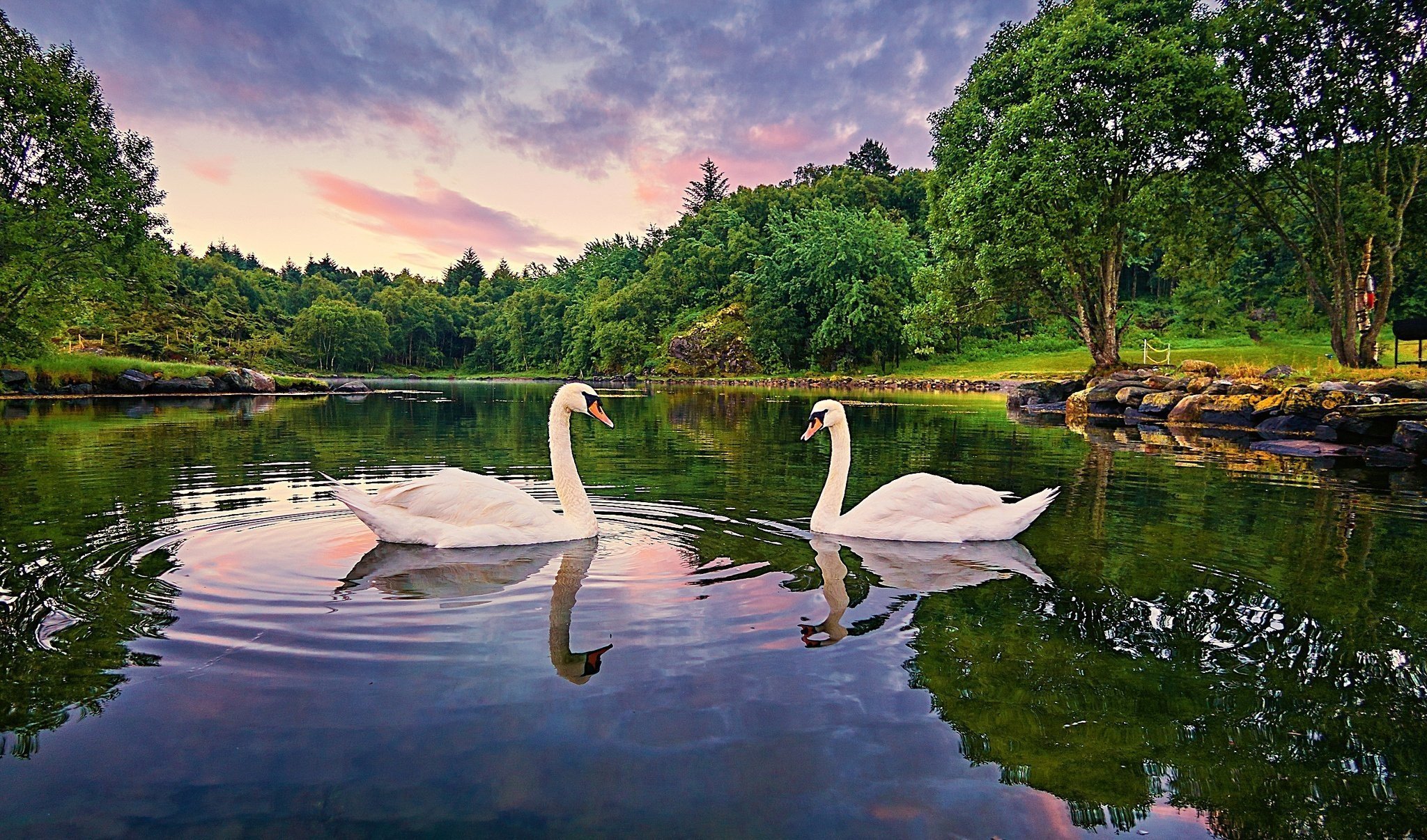 Красивые пейзажи с лебедями
