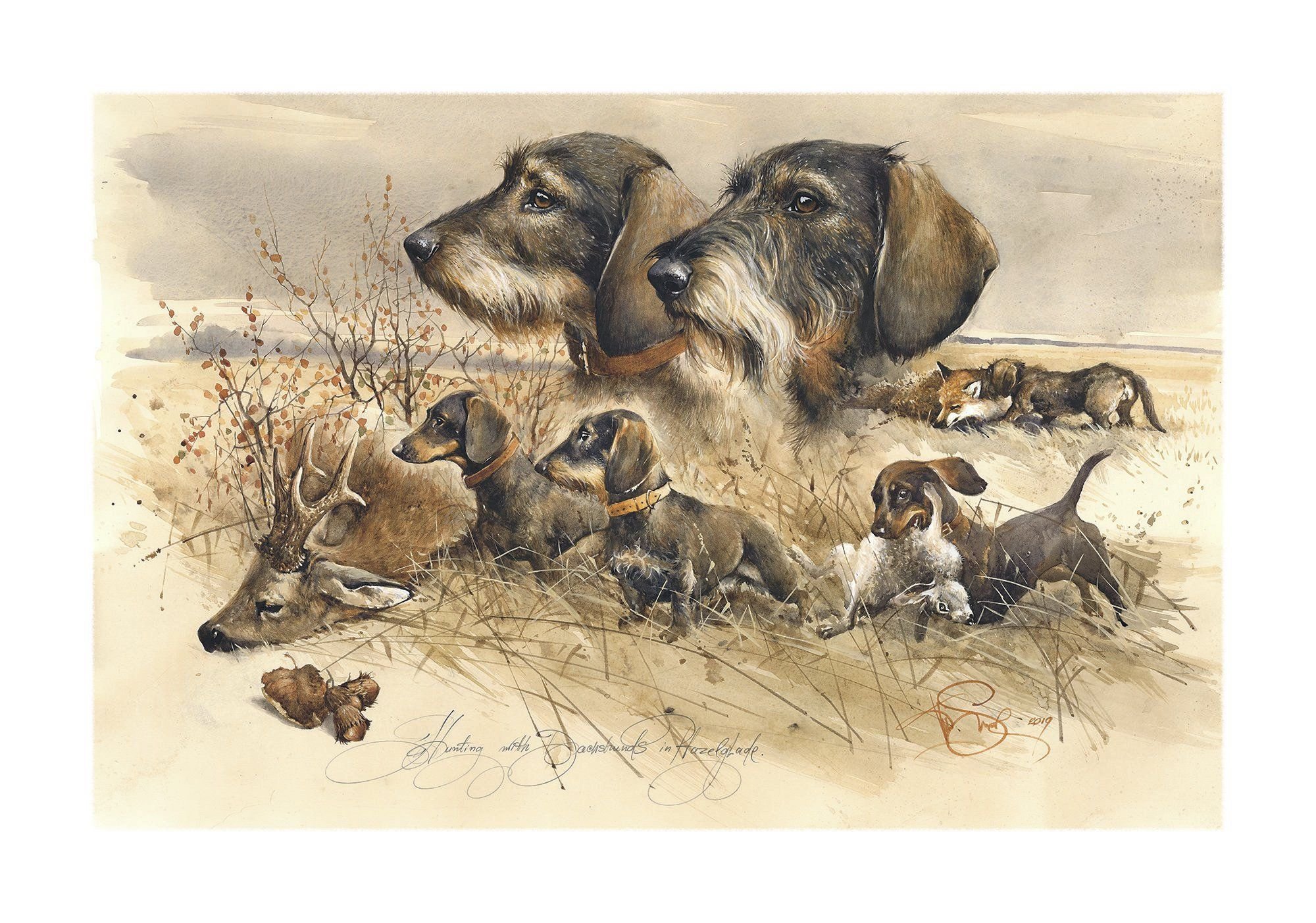 Курцхаар в живописи охота