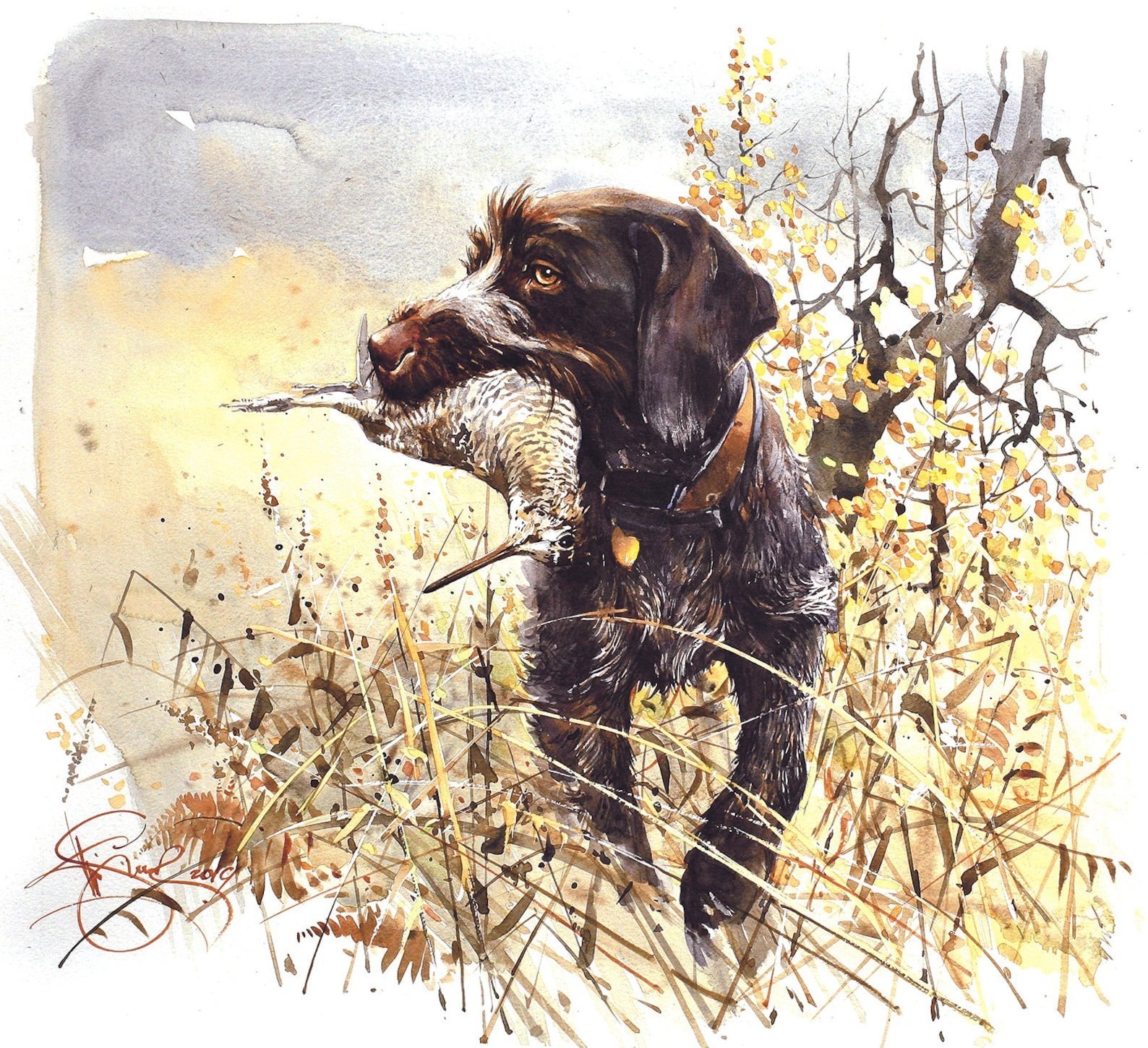 Дратхаар акварель