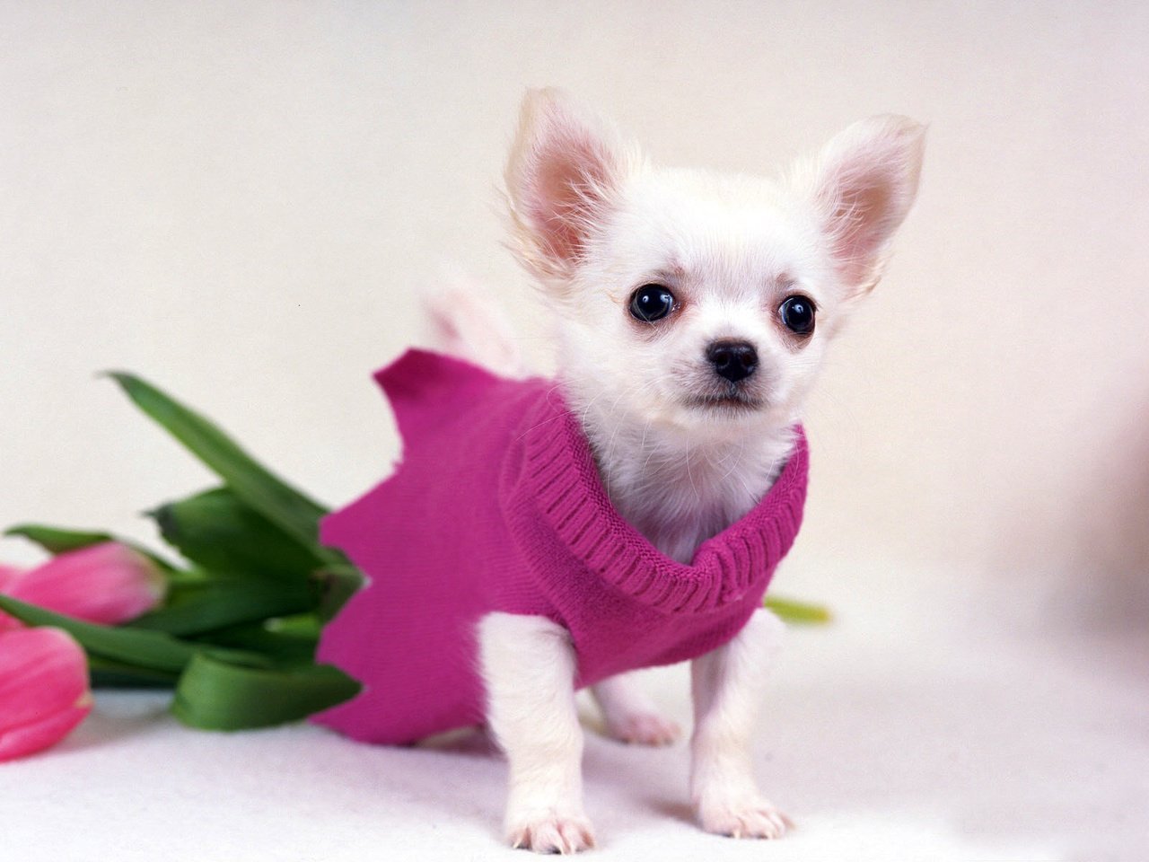 Маленькая белая собачка чихуахуа