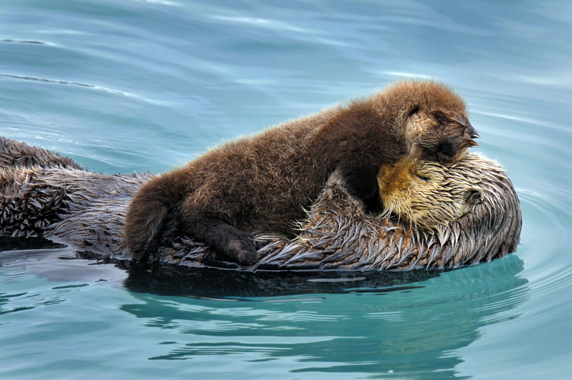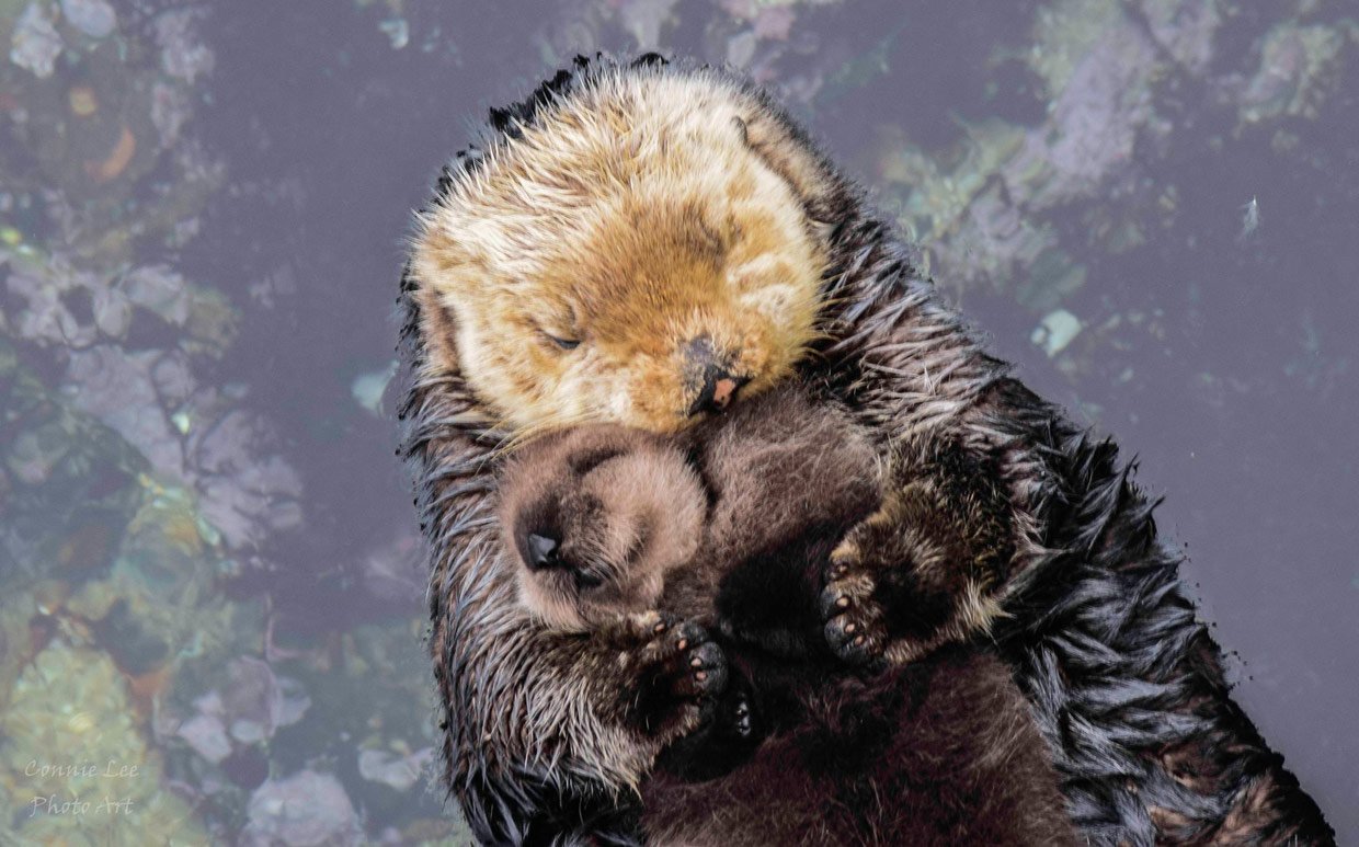 Калан обнимает детеныша