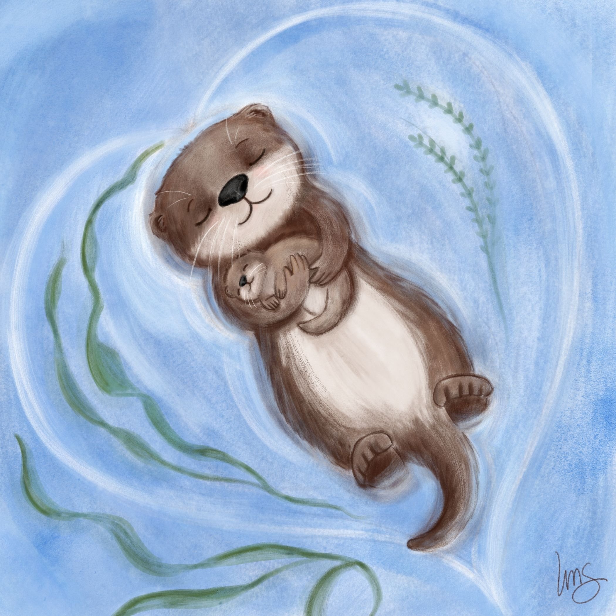 Выдры мама и малыш