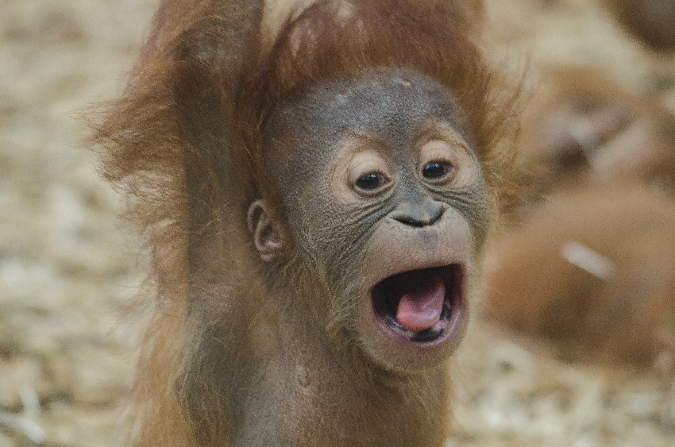 Орангутан зевает